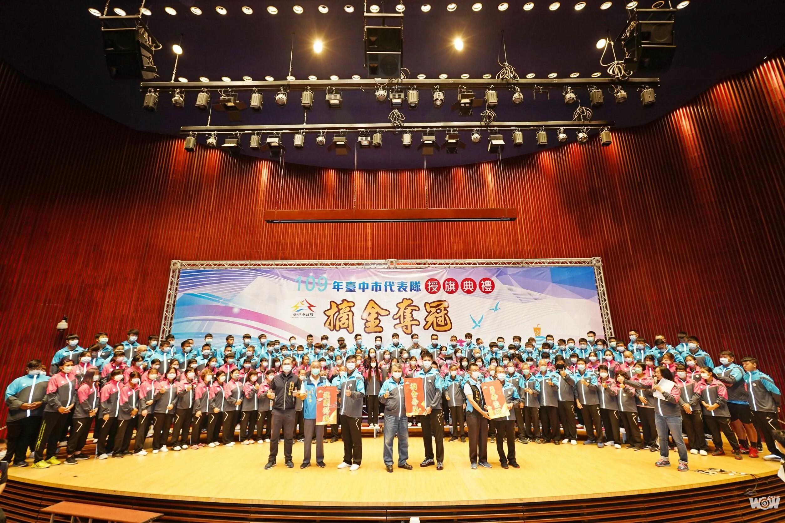 109年全民運動會今(22)日圓滿落幕,台中市代表隊展現傲人實力,勇奪57金、51銀、46銅,以總積分184.5分,獲得全國第一名總統獎,創下三連霸!其中在水上救生競賽獲得13金、7銀、1銅為最多,並破4項全國紀錄;此外,蹼泳項目也破5項大會紀錄,含4項全國紀錄;健力項目破6項大會紀錄,含1項全國紀錄,展現團隊默契與亮眼表現。