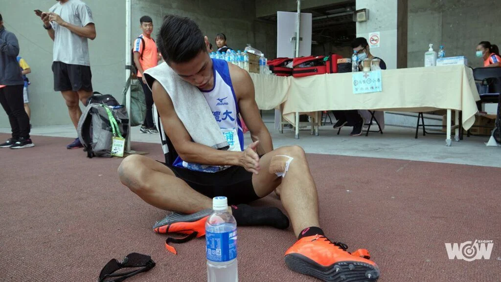 葉守博這幾年全大運幾乎是台體大最辛苦的田徑選手,除了100、200個人項目,也要扛起4X100公尺接力、4X400公尺接力的棒子,但去年中正全大運後,左膝內側肌腱發炎,這些日子邊治療、邊訓練,始終未能痊癒,直到本屆賽前熱身,膝蓋依舊略感不適。