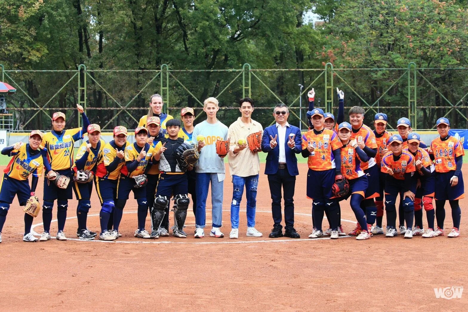 而 G5 賽前,大會也邀請「全明星運動會」藍隊隊長胡宇威與副隊長夏和熙到場開球,為企業女壘聯賽增添「星」光。兩人出現瞬間全場球迷尖叫,連球員也變成粉絲,紛紛上前擊掌,福添福嘉南鷹隊也邀請胡宇威和夏和熙加入賽前的精神吶喊。