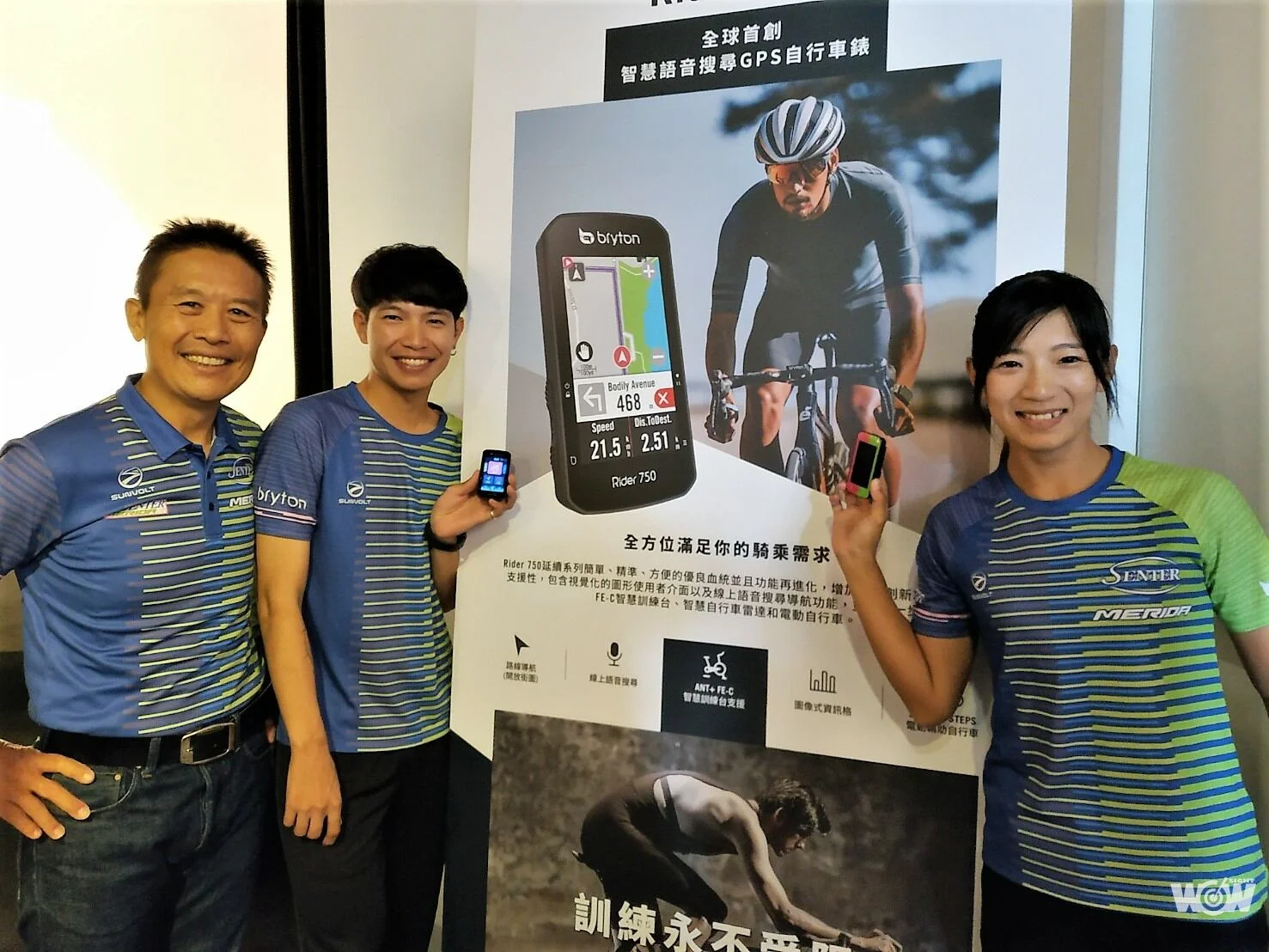 教練楊東蓁則強調,Rider 750的技術水準有了很大的進步,包括彩色與圖案,以及語音輸入,甚至還有智慧雷達感知周遭狀況以防範危險,他認為不只是隊選手有極大幫助,對一般自行車愛好者來說,可以更進一步感知到相關數據與自己身體的連結,他還打趣說:「我最喜歡語音輸入,要找附近哪裡好吃的很方便。」