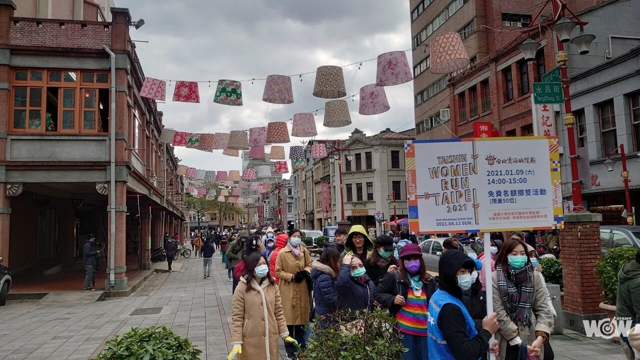 Taishin Women Run TPE連續第2年與台北霞海城隍廟合作,於1月9日下午在廟前廣場舉辦參拜與擲筊活動,通過挑戰者即可獲得免費參賽名額及特製紅線御守,一共限量50名,吸引大批女性跑友不畏8到10度低溫前來參加,排隊人龍一度綿延至迪化街永樂市場前廣場。