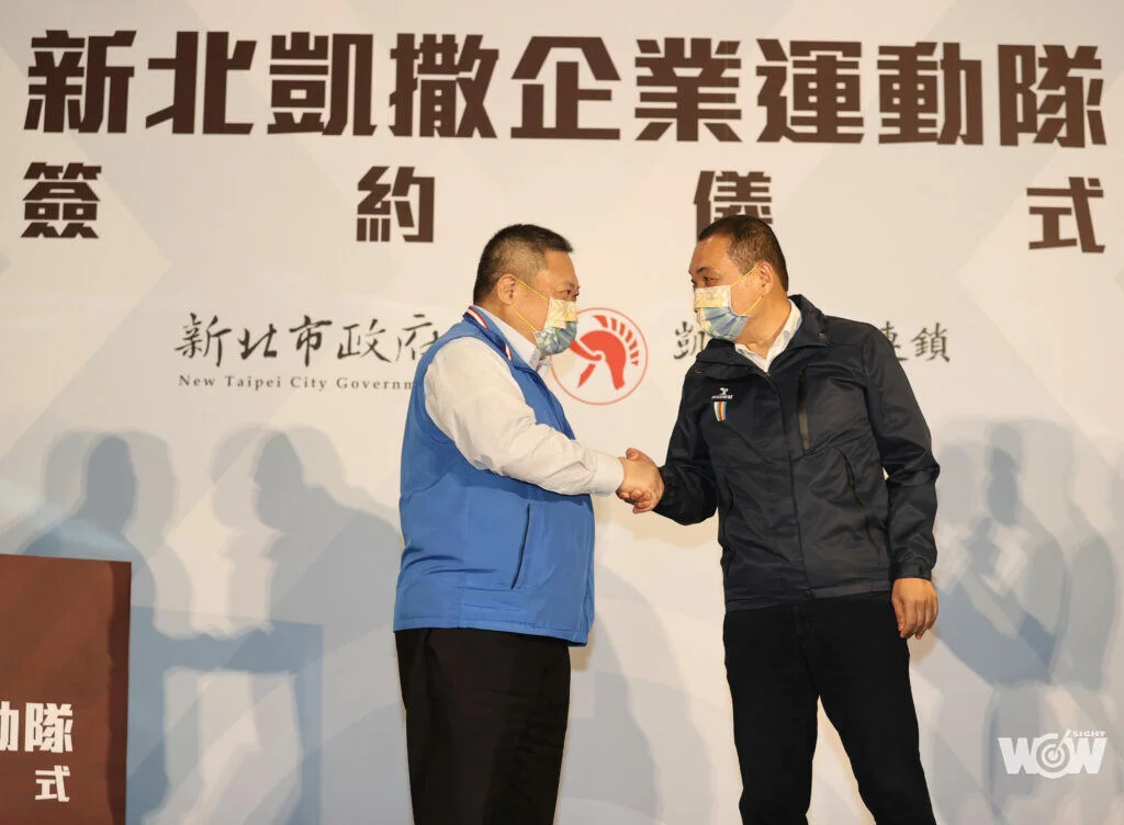 政府與企業共同支持運動團隊,新北市政府首度與凱撒飯店連鎖集團合作,其所屬2個運動隊,今(19)日開始以「新北凱撒勇士女子壘球隊」及「新北凱撒射箭隊」全新登場,市長侯友宜及凱撒飯店連鎖集團董事長林鴻道出席簽約儀式,還有射箭隊及女壘隊也全體出席,共同見證全新隊名與隊服亮相。