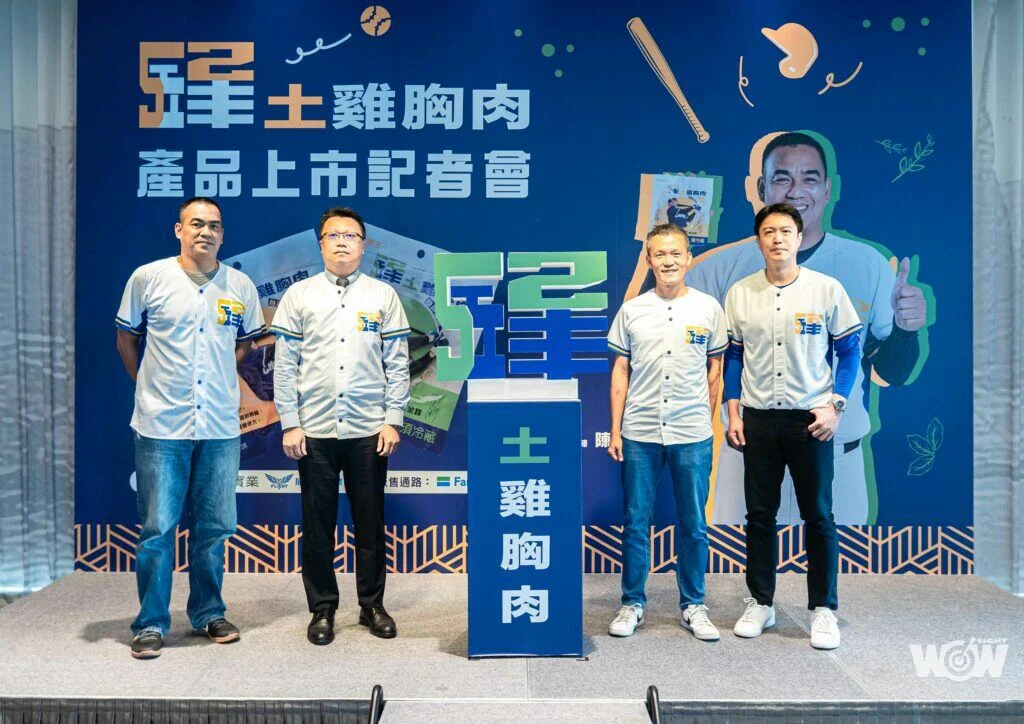 陳金鋒在記者會首度分享52鋒土雞胸肉聯名產品,他表示此次品牌精神「每次選擇都是一種挑戰」,對他而言合作契機也是很不一樣的機會,勇於挑戰讓每個嘗試都有意義。聯名產品幕後推手鋒哥經紀公司展逸國際企業董事長張憲銘與凱馨實業總經理鄧學凱,也在記者會上暢聊此次合作契機,經紀公司展逸全力支持鋒哥退休後的身分轉換,鼓勵他挑戰不同可能,借助「全台灣最專業的土雞品牌」凱馨的優勢,合作推出聯名商品土雞胸肉跟目前即食雞胸肉市場做出區隔,讓消費者認識不一樣的雞胸肉。