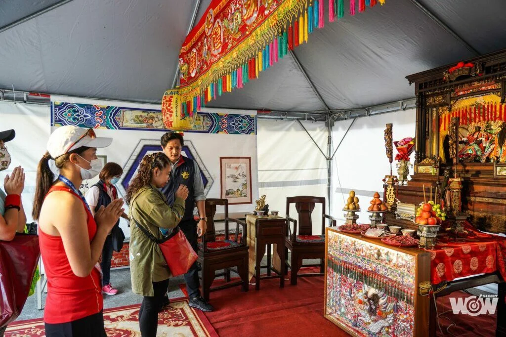 台新女子路跑連續第2年與霞海城隍廟跨界合作,終點現場再次請來三座神明分尊「城隍老爺」、「城隍夫人」、「霞海月老」坐鎮,並贈送限量御守給完賽跑者,還有彩繪師配合賽事彩繪花卉圖騰等周邊活動,要給完賽者獨家的專屬幸福,終點前並安排霞海城隍廟龍舟隊成員迎接女孩兒們。