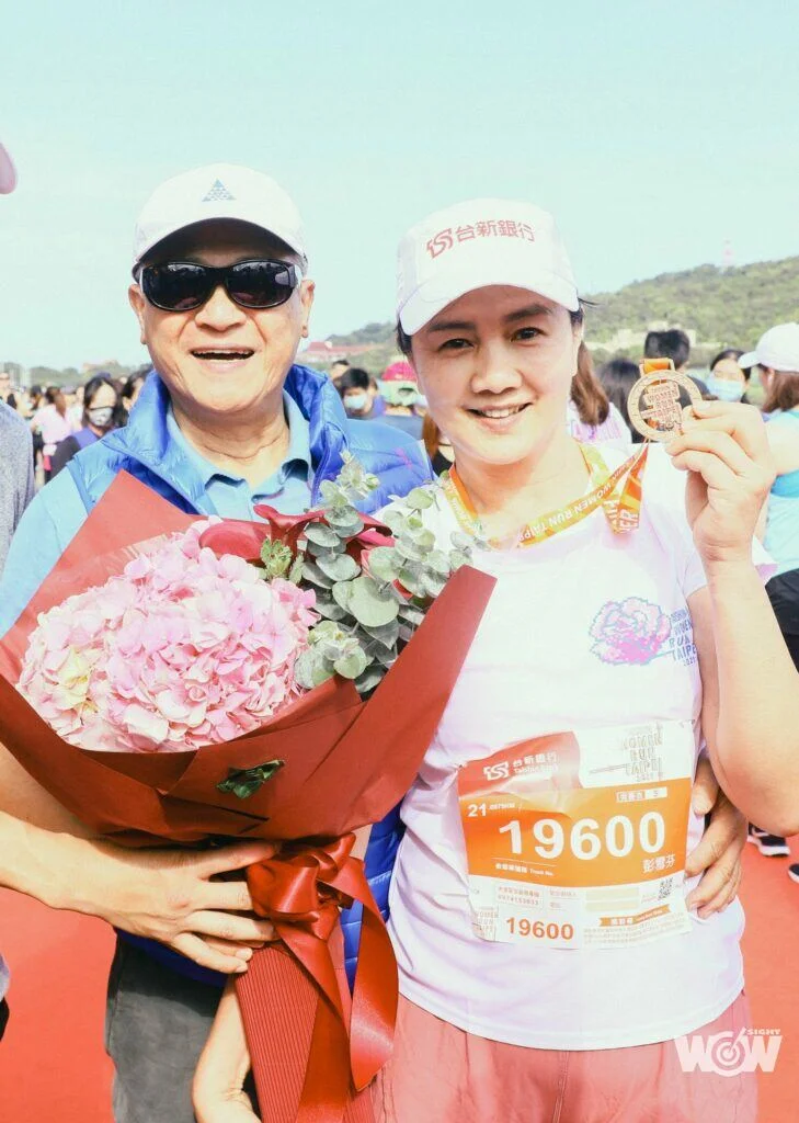 「最美董娘」彭雪芬親自領跑21公里半程馬拉松、台新金控董事長吳東亮更以具體行動表達支持,在終點獻上鮮花,熱情迎接成功征服21公里的彭雪芬,整個集團共同身體力行,一步一腳印用雙腿向女力致敬。