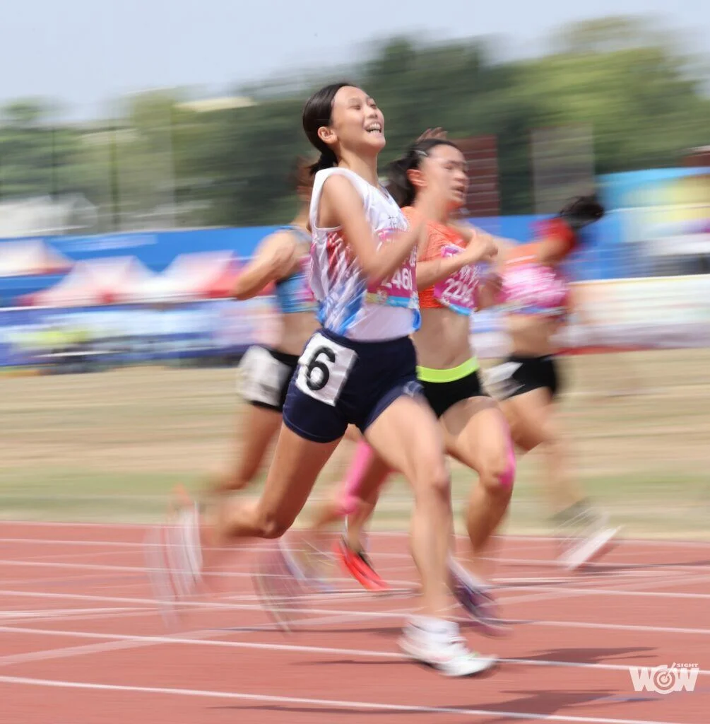 衝過終點線那刻,花蓮高農張博雅興奮高吼,她在雲林全中運田徑高女100公尺決賽,以11秒70突破高懸26年的大會紀錄(84嘉義區中運,陳淑娟的11秒76),贏得生涯首面全中運金牌,也頭一回擊敗員林農工好手張秝羚,賽後兩人相擁祝賀。