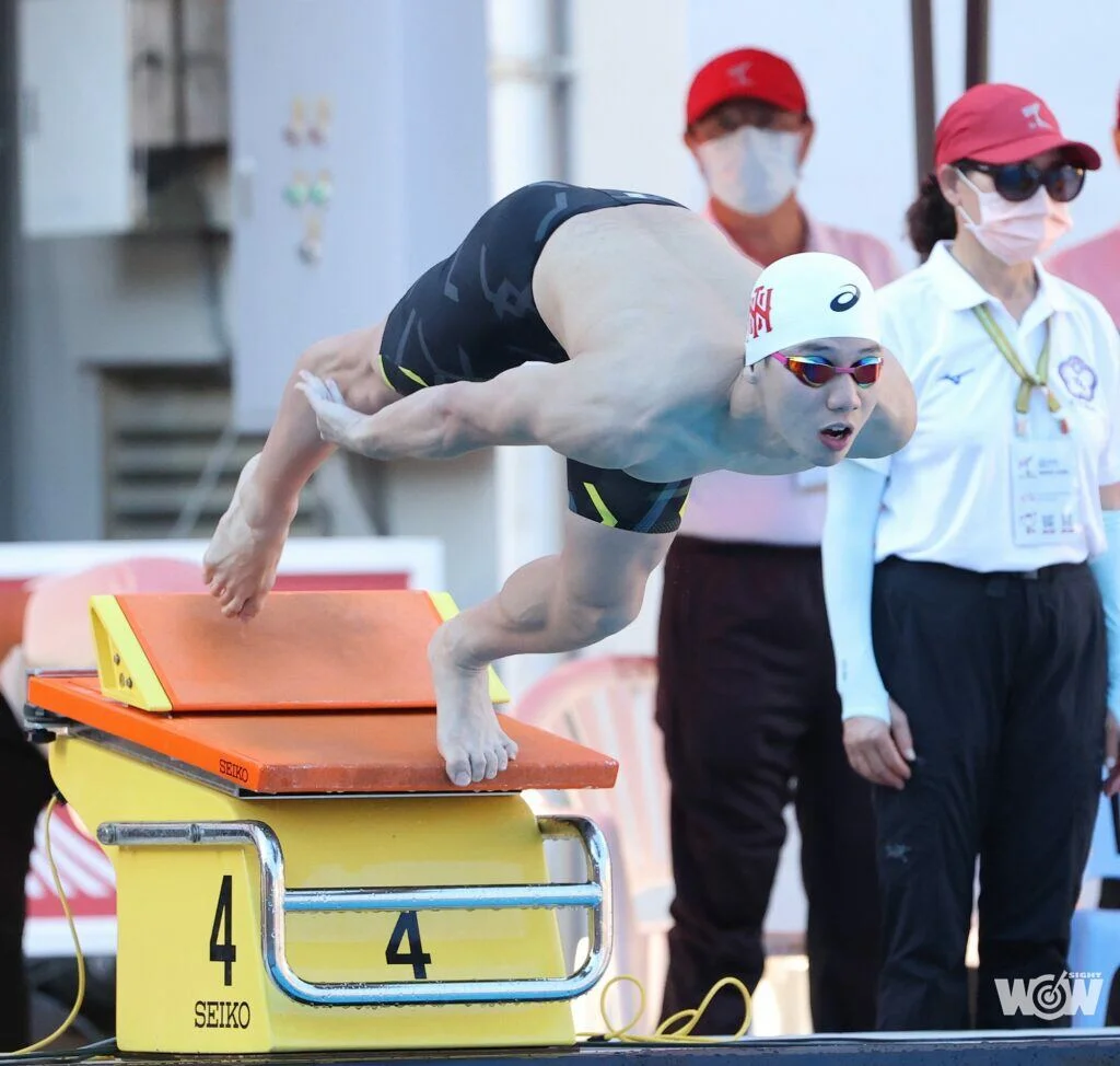 代表臺灣師大的王冠閎是大學新鮮人,第一次參加全大運就展現出色實力,他第一天就打破100公尺蝶式的全國紀錄,今再戰200公尺蝶式,他游出1分54秒77的佳績,打破由自己保持的1分55秒72全國紀錄,更難能可貴的是,將紀錄推進了將近1秒。