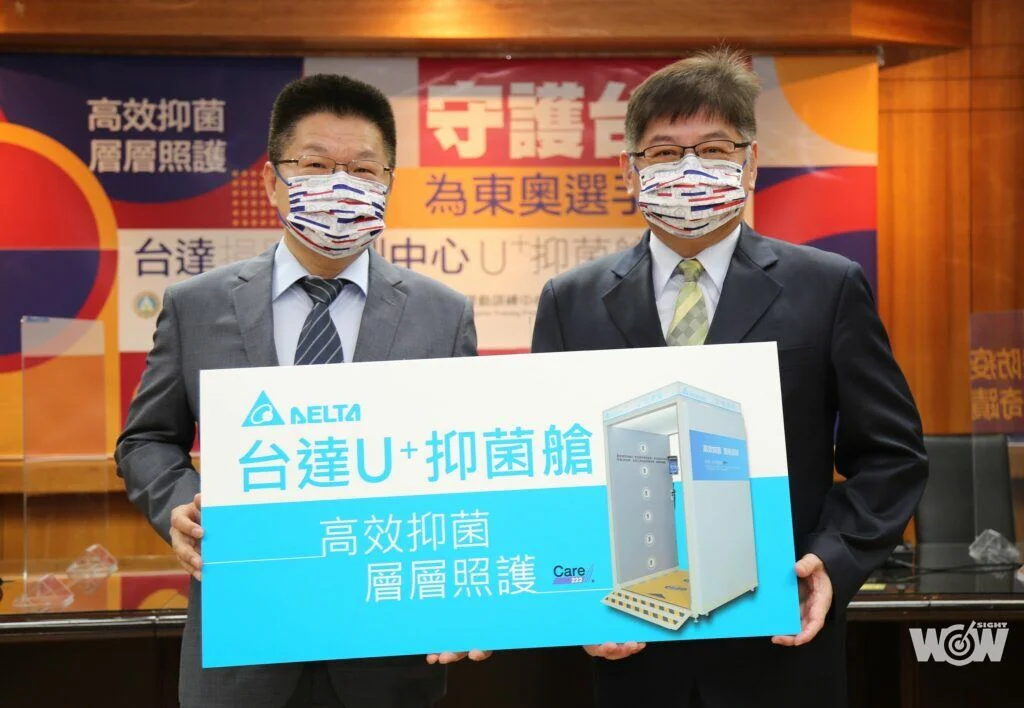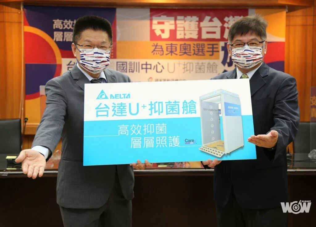 東京奧運中華隊培訓選手進入最後衝刺階段,為確保教練、選手健康安全無虞,台達電子工業股份有限公司(簡稱台達)日前捐贈最新的防疫產品「U+抑菌艙」給國家運動訓練中心,並於6月21日安裝使用。教育部體育署與台達電子29日共同舉辦線上記者會,由體育署洪志昌副署長代表受贈,並感謝台達疼惜選手,積極與政府攜手提升防疫規格,全力守護並支持我國選手,能夠健康安心地征戰東京奧運。