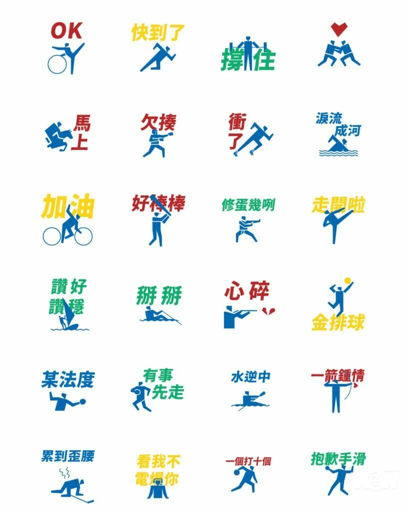 24個運動圖標貼圖,今年6月就先在FB及IG推出GIF圖,為讓更多民眾有機會線上傳情,即日起在LINE STORE正式上架,只要在LINE STORE搜尋「110全運會」就可一睹24個運動梗圖,也能轉送親朋友,一起延續奧運熱潮。