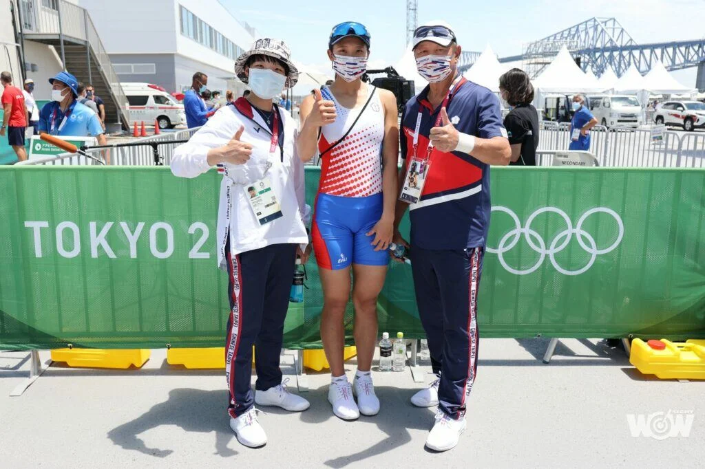 東京奧運划船比賽場地設置在東京海之森水上競技場,每天氣溫超過32度,加上海水,浮力較大,划槳時吹海風,每一段又不一樣,水下暗流也不同,難以捉摸,充滿各式挑戰。黃義婷坦言順利划岀自己想要的模樣,真的很不容易,但經過這五年南征北討,見過大風大浪,身心都穩定許多,即便有風浪,還是可以奮力前進。