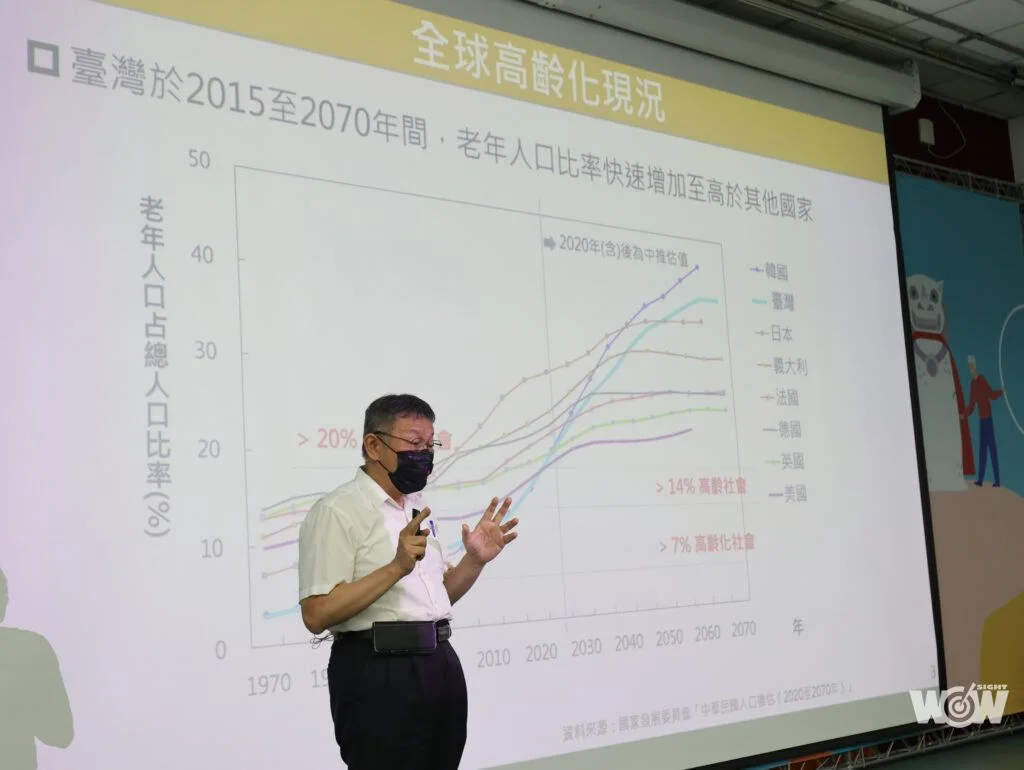 「目前臺灣社會老化速度太快,我們在可預期的將來,會超越全世界各國,像台北市,六都最高,今年底就要邁入超高齡社會,我們想辦法讓在台北慢老是件幸福的事,讓長者們健康撐到最後一秒。」台北市長柯文哲表示,藉由醫療照顧、社會福利關懷之外,更需要推廣樂齡運動,來提升高齡者健康及生活品質。