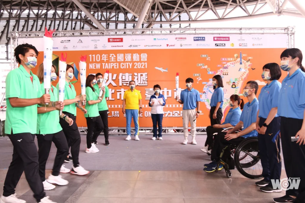 新北市選手代表由最帥女排隊長「阿非」陳菀婷,率極速超跑女子排球隊員一起擔任鐵路火炬手,臺中市則由柔道型男楊勇緯領軍,率100公尺跨欄世界聽障紀錄保持人許樂、身障選手林亞璇、林姿妤、李凱琳、吳振勝等運動員,進行簡單隆重的聖火交接儀式。
