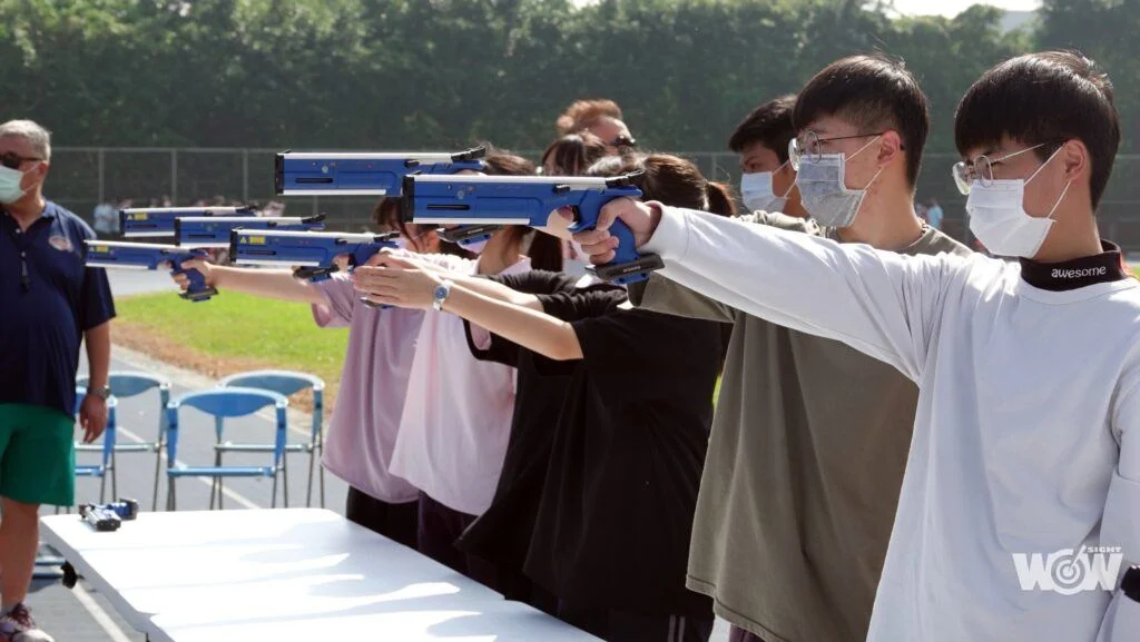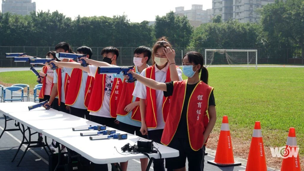 11月5日林口高中校慶運動會,學校原本重視的跑步射擊賽事,因為學生施打疫苗,不便劇烈運動,改為射擊比賽,運用雷射槍來推廣,讓全校同學體驗射擊競賽。