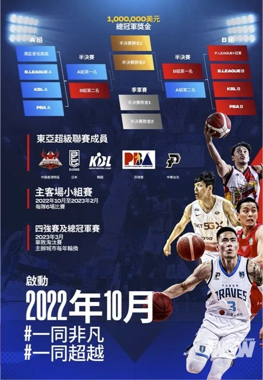2021年12月1日,東亞超級聯賽(EASL,簡稱「東超」)在中國香港特別行政區正式宣布,將於2022年10月迎來這項泛區域賽事全新主客場賽制的揭幕戰,8支參賽球隊分別來自B.LEAGUE、KBL、PBA、P. LEAGUE+及中國香港特別行政區頂級球隊。
