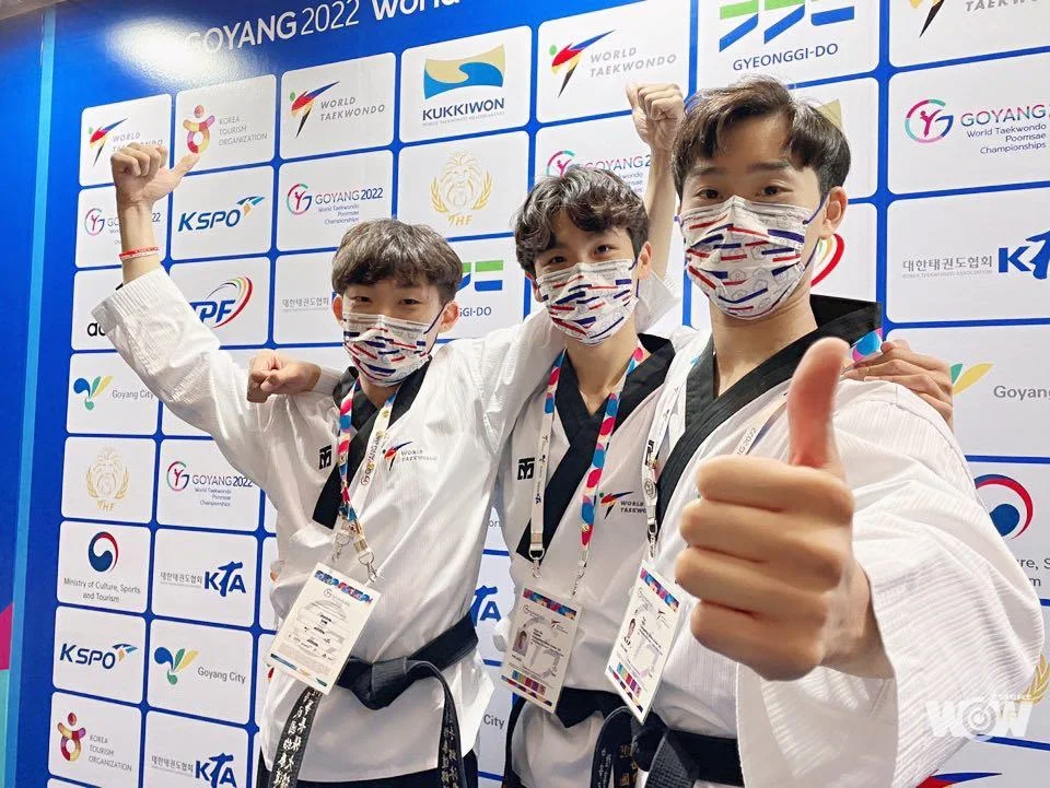 2022年高陽跆拳道品勢世錦賽,中華隊在男子團體賽締造歷史,22日由葉芃、邱沐恩、張宸帛在公認品勢18-30歲組一路過關斬將,並技壓地主南韓,拿下中華隊隊史首面男團金牌。