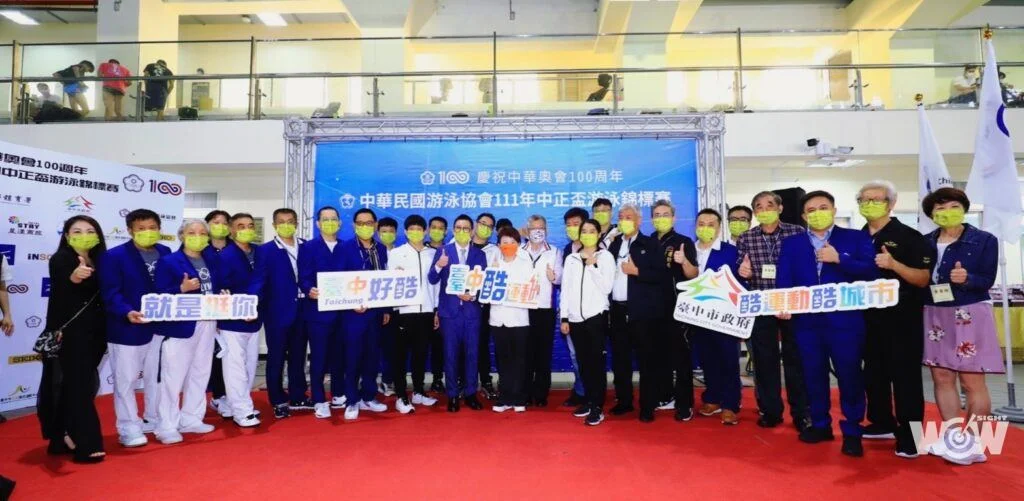 111年全國中正盃游泳錦標賽今在台中市北區國民運動中心舉行,適逢中華奧會成立100周年,讓本屆賽事意義更顯非凡,開幕典禮冠蓋雲集,台中市長盧秀燕、中華奧會副主席蔡家福與新任中華民國游泳協會理事長陳任邦皆蒞臨現場,還特別為即將出征游泳世錦賽的選手舉行授旗儀式,鼓勵選手力爭佳績。
