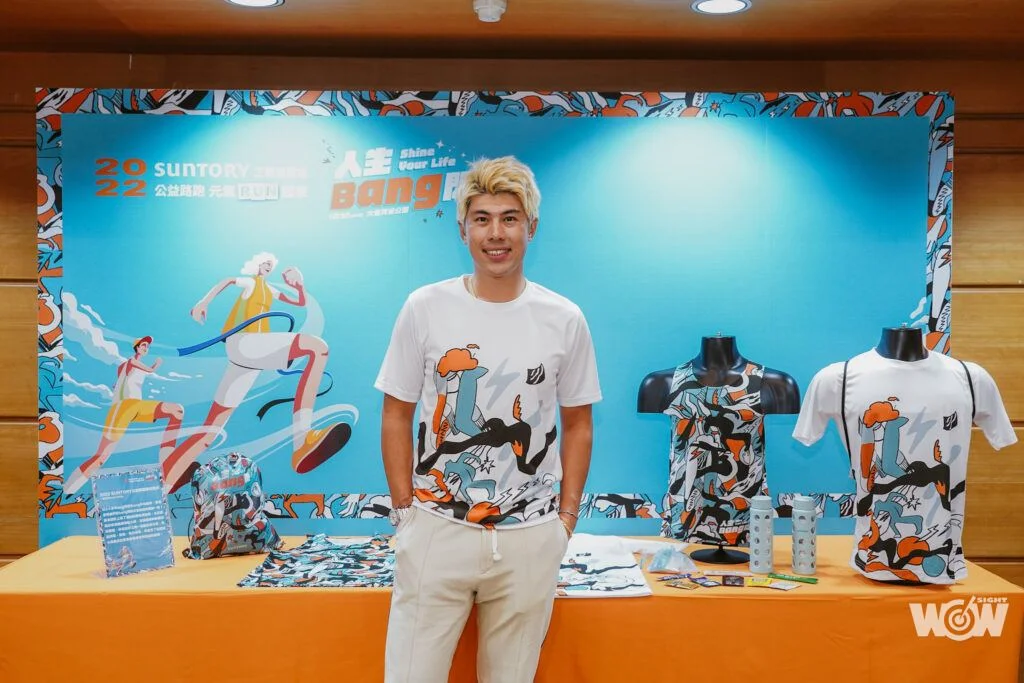 三得利健益為鼓勵參賽者在跑步過程中也有美麗好心情,特別邀請本身就是運動狂熱份子的華裔設計師Daniel Wong為賽事設計跑衣,他以最擅長的印花堆疊設計呈現,流動的線條和鮮明的色彩,帶給人動感、閃耀的感覺。提到設計理念時,他特別強調以Bang作為發想:「印花設計是想像參與者們跑起來的那一刻,那股奔馳與衝勁的感動,線條勾勒帶著內心的興奮感,宛如氣流在跑者身邊的想像。希望讓擁有這件跑衣的跑友,日後都能記住今年參加三得利健益公益路跑的感動,並想起當初那個Bang閃的自己。」