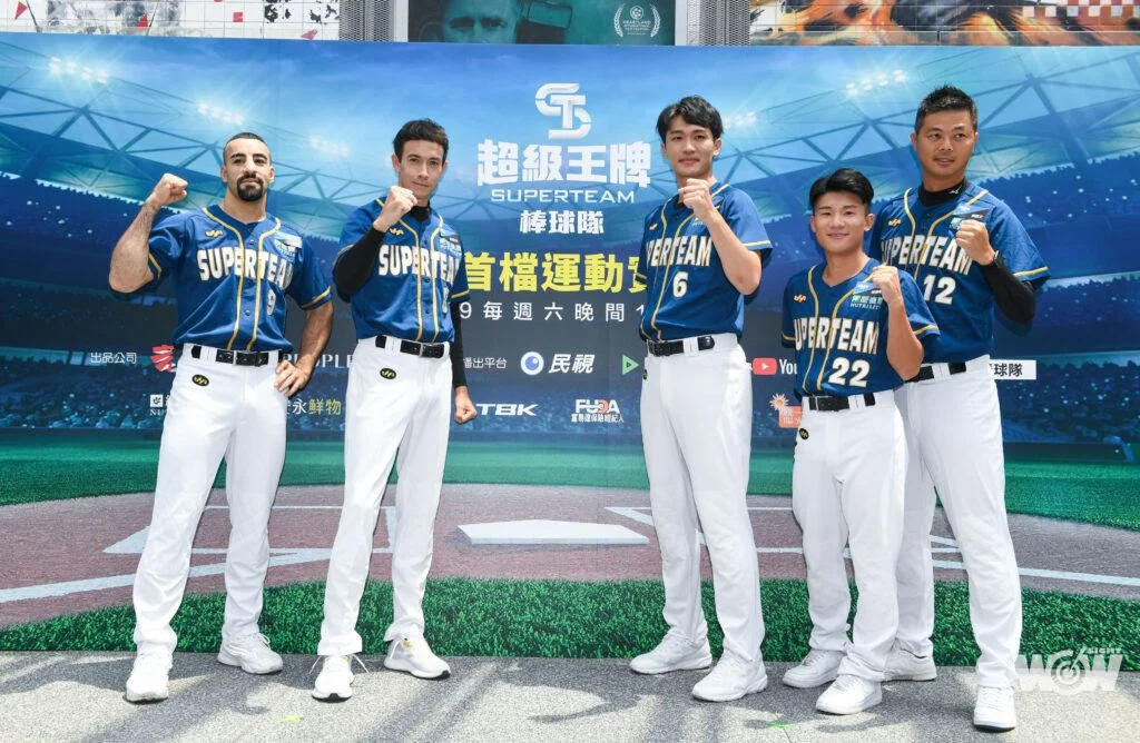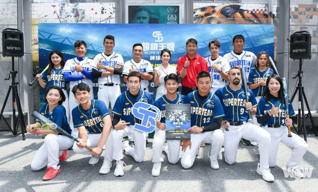 由巨宸製作、仁仁娛樂出品,台灣首檔運動實境秀《超級王牌棒球隊》由中職傳奇名將「東哥」黃忠義當任總教練,指導一群不會打棒球的頂尖運動員,跨界打棒球,本週六(9日)晚上十點民視無線台開播、本週日(10日)晚上十點LINE TV播出、巨宸製作/超級王牌棒球隊官方Youtube自7月13日起每週三中午十二點播出。該綜藝今(8日)舉辦首映會,由總教練黃忠義領軍方昶詠、陳文賓、林其緯、黃紹熙等5位王牌教練,與「體壇四女神」許淑淨、姜巧文、譚雅婷、程文欣;「格鬥天王」張莫;「體育系男友」紀亞文、薛銘文、呂佳彬與林昀蒂等人出席,擔任客座教練、中職盜壘王黃甘霖為神秘嘉賓出席,替東哥打氣;黃忠義在首映會上發下豪語,「若首集收視率破1,全員跳水!」希望節目遇水則發!