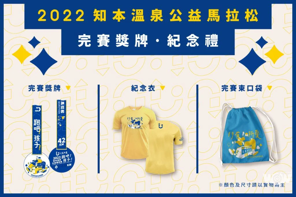 此次活動提供全程馬拉松組、23K超半馬組、10K健康組及6K休閒組共四個報名組別,並開放個人報名和團體報名。全馬及超半馬賽事總成績及分組成績獎項包含 Garmin Forerunner 945及245 專業運動跑錶、老爺酒店集團住宿券等獎項,總價值近百萬。不僅賽事獎項和活動吸引人,知本溫泉公益馬拉松更獲得不少企業愛心響應!超豐富完賽禮包含:AminoVITAL贊助全馬跑者GOLD黃金級胺基酸、泰山企業贊助塩質擔當電解質補給飲料、台東必買伴手禮-青澤贊助台灣經典米香零食「咪菓」,除此之外還有獨具特色由卑南族卡大地布部落婦女所編織的原民風手環一條、賽事紀念T恤、賽事紀念口罩、知本老爺酒店免費泡湯乙次等多樣完賽好禮!讓你有跑、有吃、又有拿!不論是路跑健將、運動愛好者,或想體驗熱血馬拉松的民眾和跑友們都能共襄盛舉,一同行有所愛。詳細資訊及報名方式請見洽伊貝特報名網 https://bit.ly/3Qg7Van