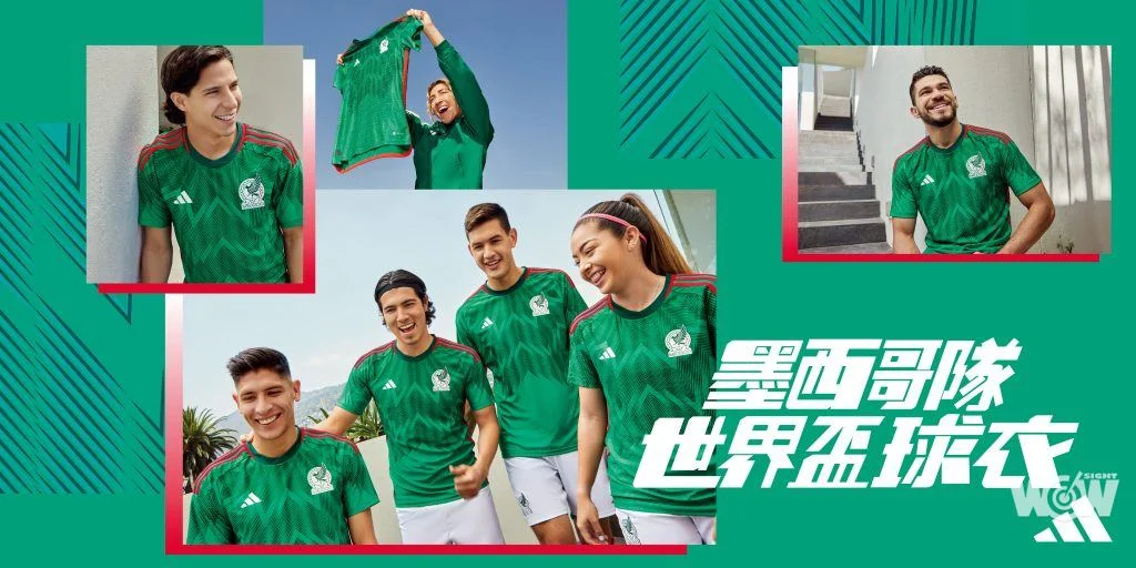 除了以上五隊外,墨西哥隊主場球衣的大片羽毛圖案靈感來自美洲文明中的「羽蛇神」,當地人將其視為生命之神,藉以激勵球員奪冠!威爾斯隊主場球衣則以紅色為主色,用深淺不一的鋸齒狀色塊呈現,領口以綠色與白色線條環繞,呼應其「紅龍」隊徽的配色。
