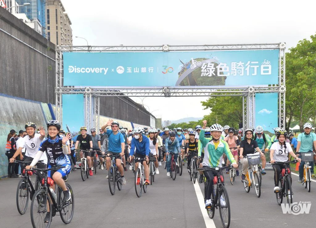 「綠色騎行日」一早由玉山銀行董事長黃男州、Warner Bros. Discovery集團台灣商務長馬艶華、奧運射箭國手湯智鈞及奧運射擊手吳佳穎擔任領騎先鋒揭開序幕,率領千位民眾從新北江子翠河濱公園出發,跨越雙北於大佳河濱公園完成24.8公里騎行,千人騎行的盛況也寫下台灣環保騎行史的全新一頁!