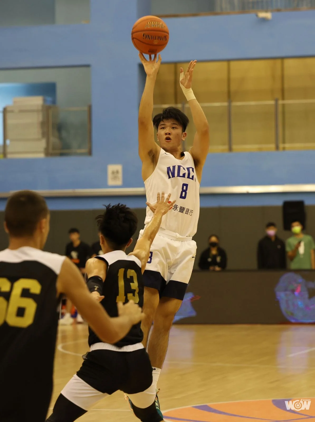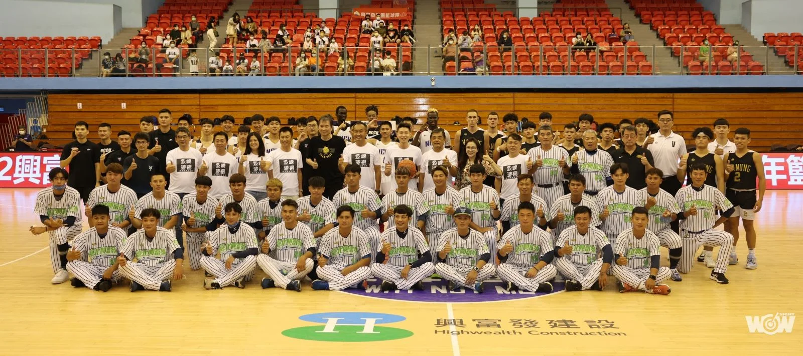 臺北市長參選人蔣萬安,為大專男子組臺灣師大和國立體大之戰開球;興富發集團總裁特助鄭鈞方,為大專男子組政治大學和萬能科大之戰開球。