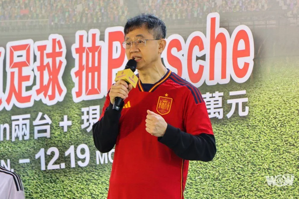「買運彩、瘋足球、抽 Porsche」活動在11/7日至12/19日期間舉行,不限球種、單筆/張投注滿2000元,即可有抽獎機會;民眾在實體投注站單張投注滿500元,即可限量免費兌換CoCo飲料,另外,也與胖老爹聯名推出運彩足好運全家桶炸雞,並邀請AKB48 Team TP擔任運彩投注站一日店長,也將贈送新光影城直播派對門票,台灣運彩總經理林博泰表示,今年希望將賽會氛圍打成嘉年華,讓民眾有吃、有喝、還有玩。