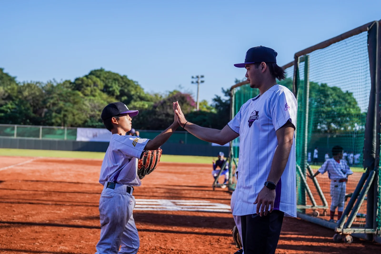 第二次參與訓練營的旅美選手鄭宗哲,總是開心與小球員擊掌互動,曾經在南美洲打球的他說,「美國和中南美國家的小學都沒有棒球校隊,可能都是從社區棒球,甚至有的地方還沒有社區組隊,就是路邊玩球,到了10幾歲,才開始接觸正式訓練,就是從玩球開始。」他認為打棒球,不管到哪個階段,正向的心態非常重要,「南美洲隊友曾經跟我說,不管打得好不好,都是一場比賽,每場就是要去享受,享受那個輸、享受那個贏,享受打得好、打不好,去享受過程,所以如何開心打球是件很重要的事,未來可以開心的抱著熱情去學習。」