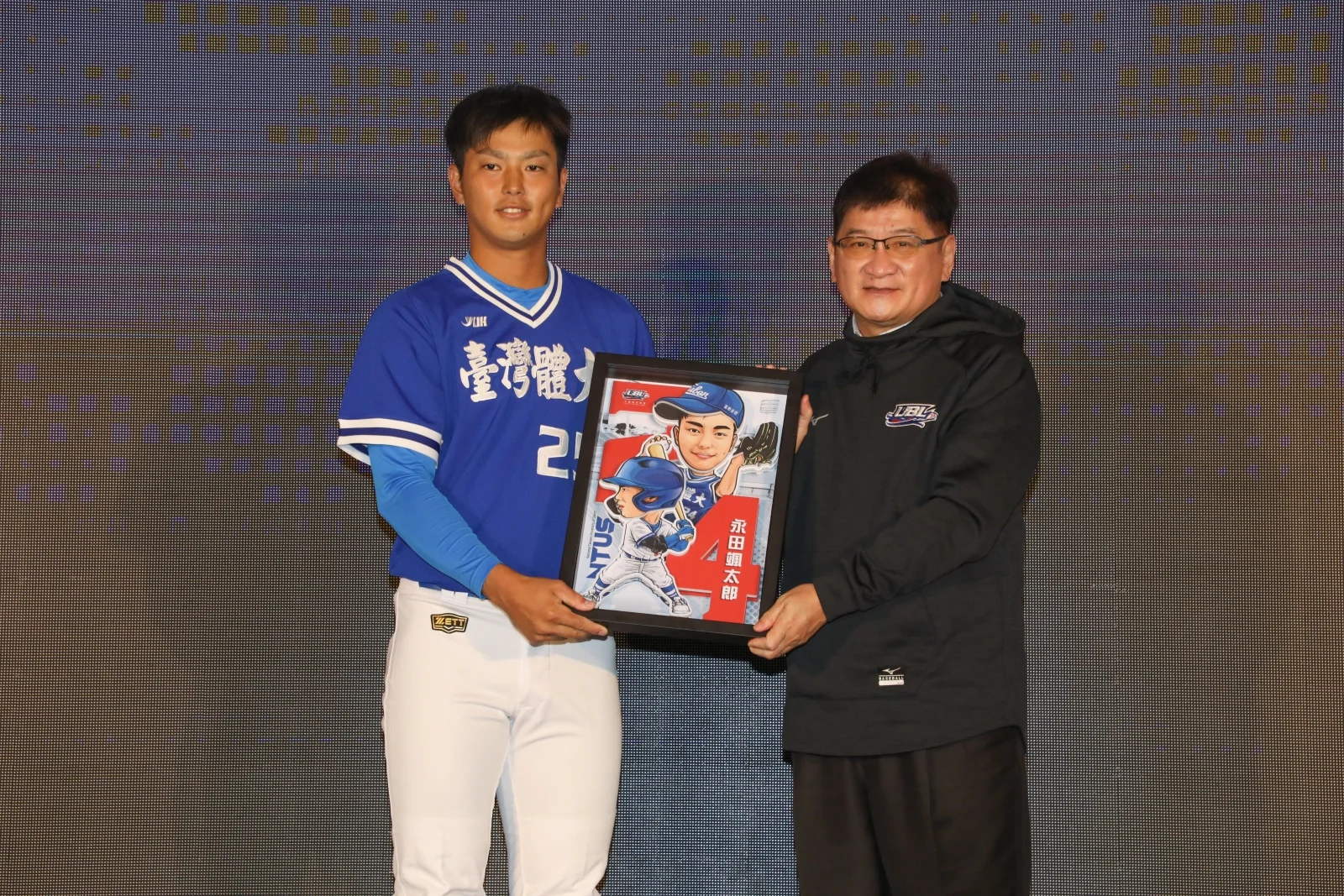 上學年度 UBL 擔任臺灣體大主力游擊手的日籍球員永田颯太郎,日前在日職選秀成為樂天金鷲隊育成選手第四指名,寫下我國大學所屬球員在日職選秀上榜的首例。永田颯太郎十分感謝臺灣的栽培,離臺前特地出席今天的 UBL 記者會,分享這三年在臺的成長。同時更在記者會上驚喜與目前效力於樂天金鷲隊的「前輩」、旅日投手宋家豪相見歡。
