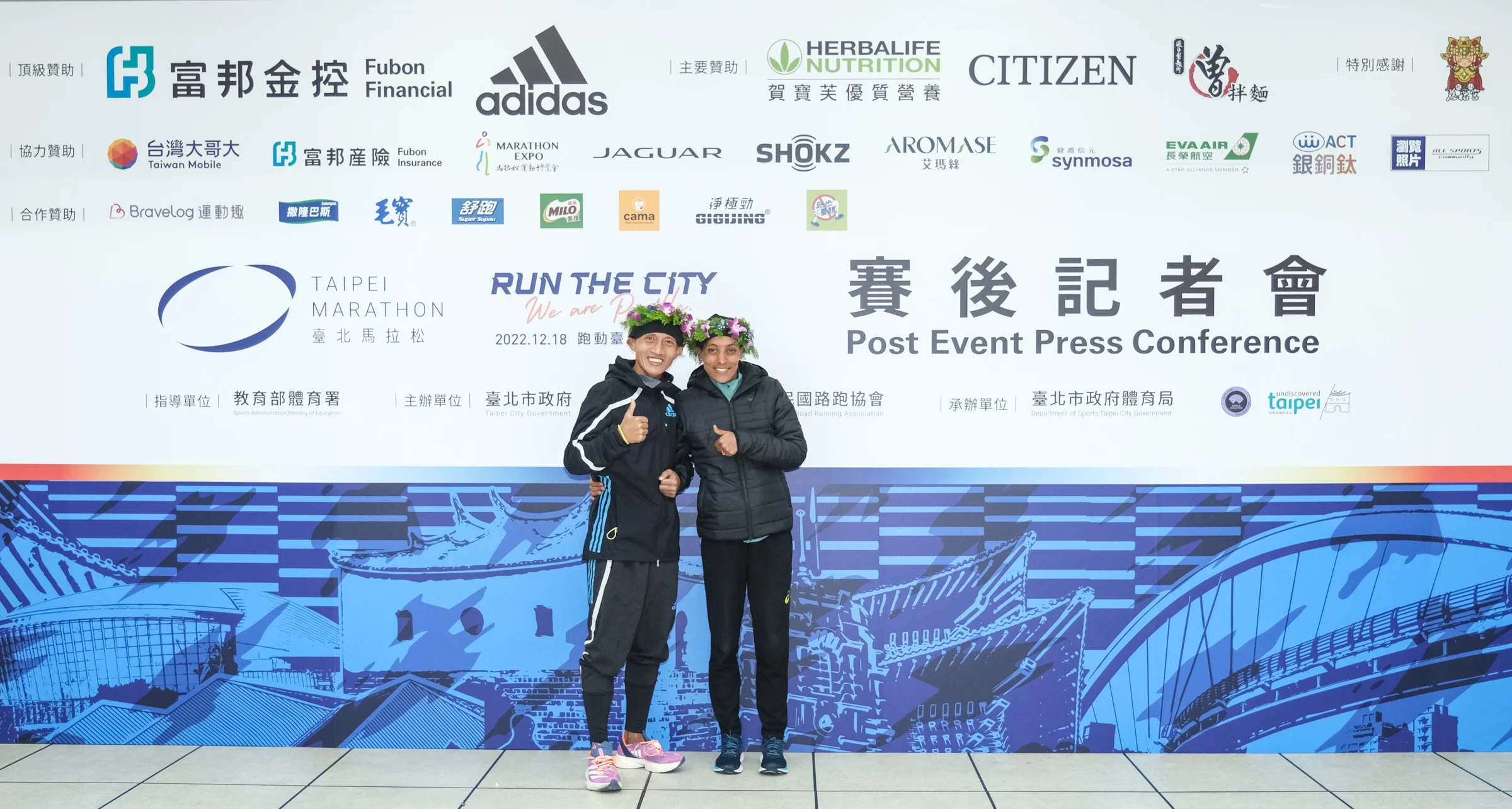 擔綱「最佳配速員」的蔣介文開玩笑說,「賽前就跟她說跟著我的速度,如果打破女子組大會紀錄,記得獎金要分我三分之一。」賽後記者會上兩人握手合影,相互恭賀致意。