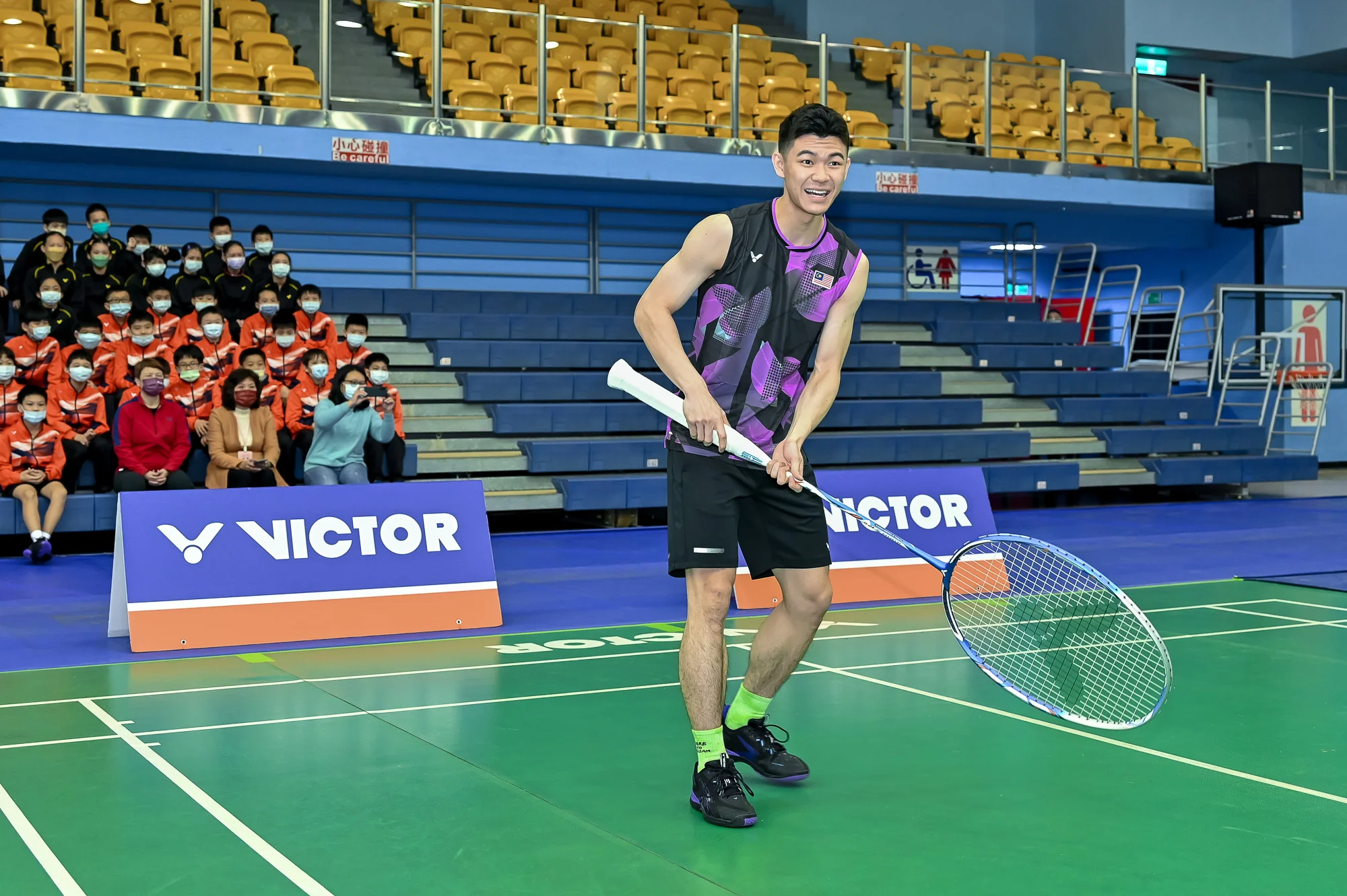 2022 羽球賽季甫落幕,頂尖羽球品牌 VICTOR特別邀請亞錦賽金牌、現今排名世界第二的馬來西亞男單好手李梓嘉來台交流,「羽球王子」王子維也以特別嘉賓的身分驚喜現身,兩位 Team VICTOR 男單好手難得同台,不僅與VICTOR長期贊助且培育出許多優秀球員的羽球名校民權國小羽球隊進行表演賽同樂,更與小小球員分享逐夢經驗,為羽球基層推廣貢獻一份心力!