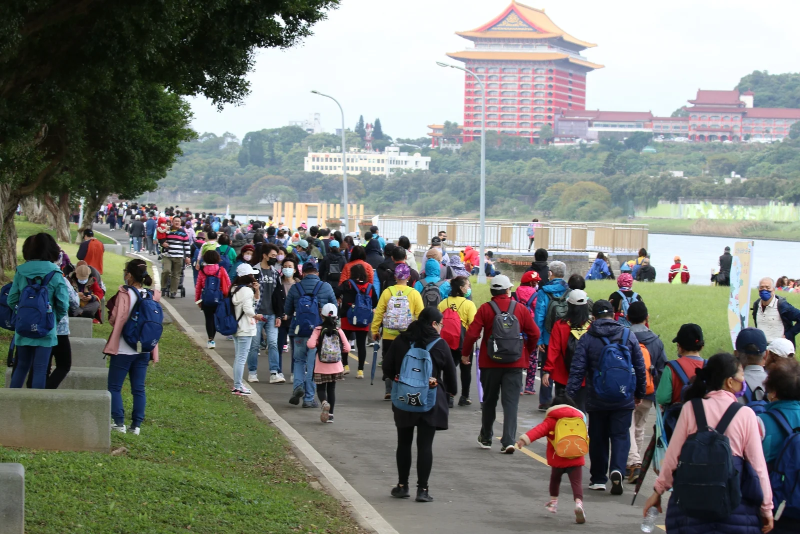 這場由希望基金會與臺北市政府體育局主辦的「2023元旦健走」,是由中華電信、中華郵政以及台灣中油共同贊助,於上午八點半在圓山花博廣場熱鬧登場。這次的健走路線,距離大約是七公里,換算步數也是一萬步左右。路線範圍都在大佳河濱公園內,從集合廣場出發後,於大直橋折返經過舊兒育中心旁,再返回廣場,沿途景致及視野非常開闊優美。健走過程中,超馬三太子也秉持著「有行有保庇」的精神,陪著參與民眾走完全程。