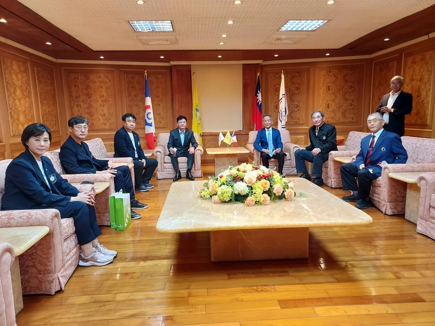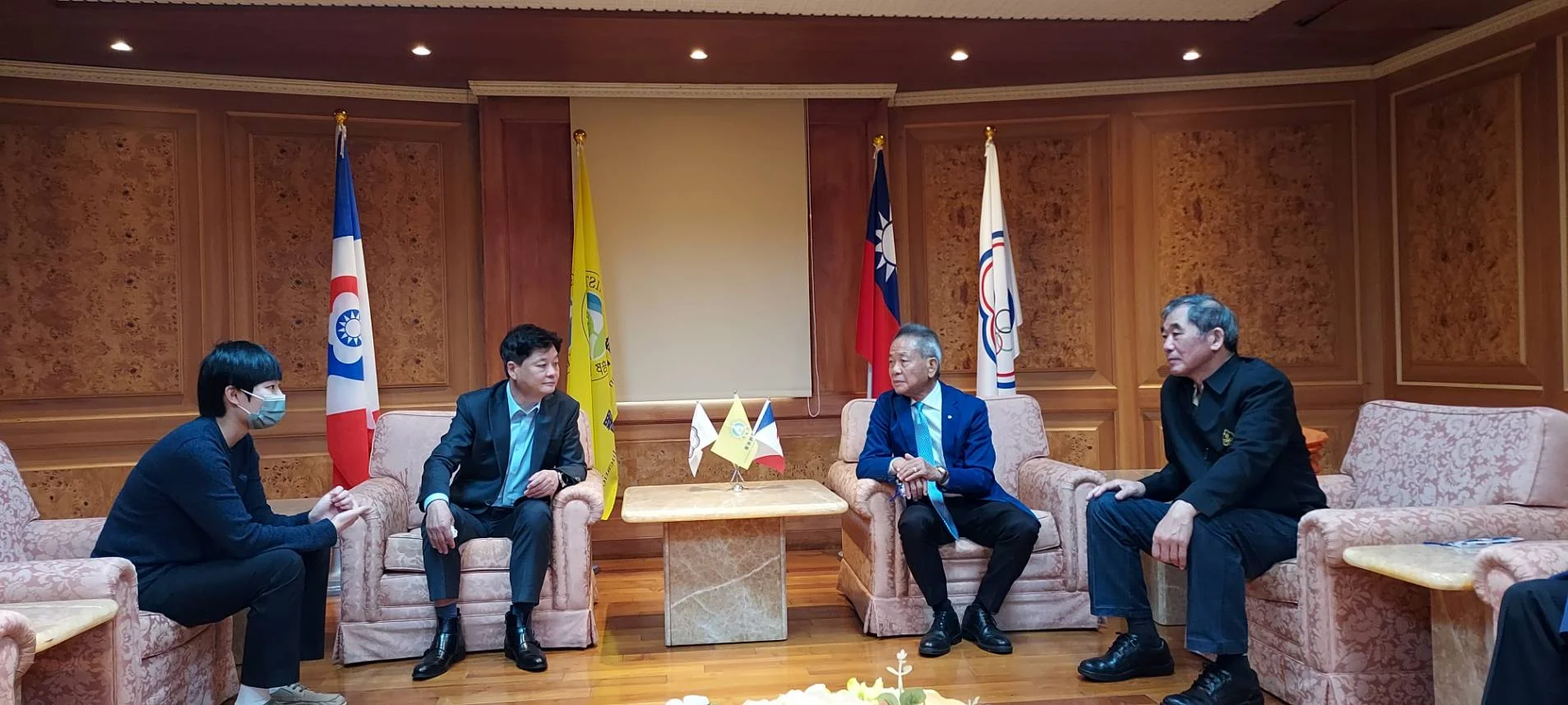 日韓會長一行共有七人於透過會議討論期間的空檔還拜會了中華奧會副主席廖裕輝,全國體總葉會長政彥,分別介紹我國在相關國際組織事務和國內各界體育運動事務的說明,對於,他們都有深入的認識。
