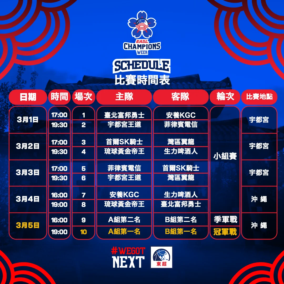 「很高興與亞洲領先的電視和數位網絡媒體合作,為全球各地的東超粉絲帶來東超冠軍周的興奮與激情。」東超首席執行官馬特(Matt Beyer)說,「東超是該地區頂級的籃球娛樂體驗,我們渴望在3月1~5日向球迷們展示我們的賽事。」