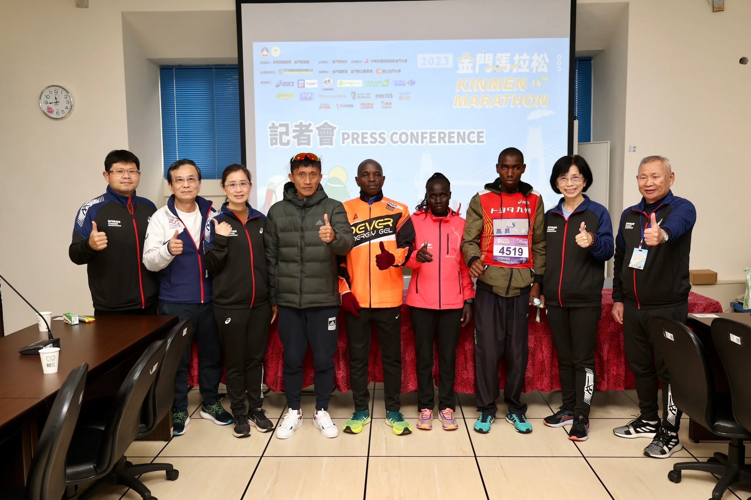 賽後記者會中金門縣政府教育處處長黃雅芬代表縣長向各位跑友們 雖然有霧但是很開心可以讓這多好友一同來跑一趟金門大橋。肯亞男女總冠軍選手更表示,雖然是前兩天才從肯亞轉馬來西亞到台灣,花費50小時才抵達金門,但金門馬拉松是一個很特別艱辛的賽道,他們明年還是希望有機會可以再來到金門馬拉松衛冕冠軍。而本屆國內冠軍蔣介文選手在旁聽到來自肯亞的冠軍選手現齡47歲後笑著表示,這給了他非常大的鼓勵,讓他知道他還可以再跑好幾年。