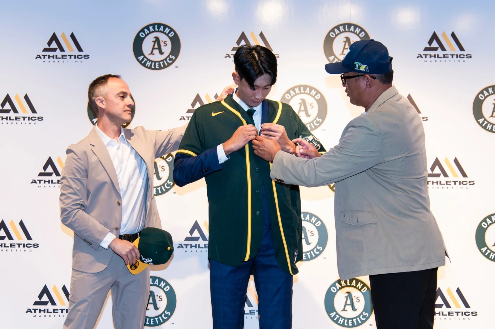 從小學五年級到國中三年,沙子宸都在父親沙開橋成立的「TYSA運動家社區棒球隊」打球,不僅培養出興趣也立下旅美夢想,因此沙子宸特地穿著TYSA運動家的衣服出場,再進行換衣儀式,穿上奧克蘭運動家的球衣,象徵從社區棒球的「運動家」打到美國職棒的「運動家」,期望能鼓舞更多從社區棒球或非科班出身的選手勇敢追夢。