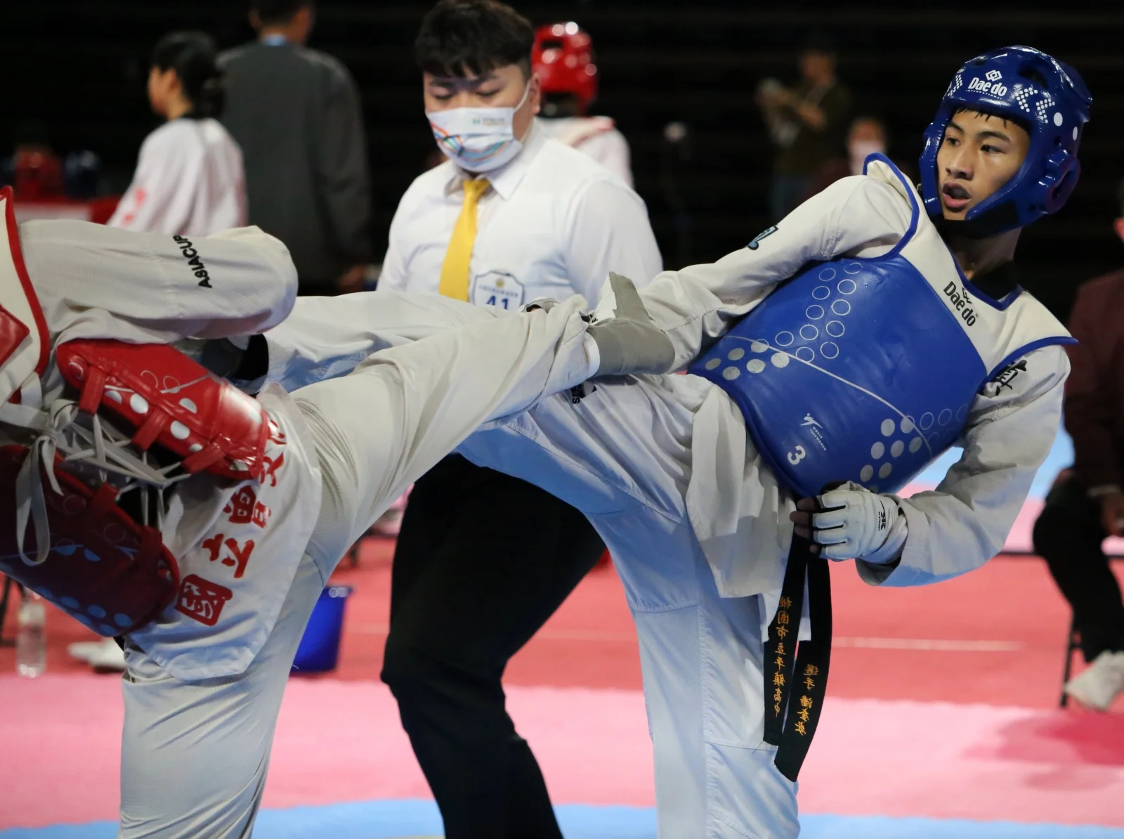 112年全中運跆拳道對打項目,15日展開高中組首日賽程,桃園市平鎮高中4人闖進金牌戰,抱回3金、1銀,其中潘奎安不但是當中唯一奪金的男選手,還是到高三才首度在高中組奪冠。