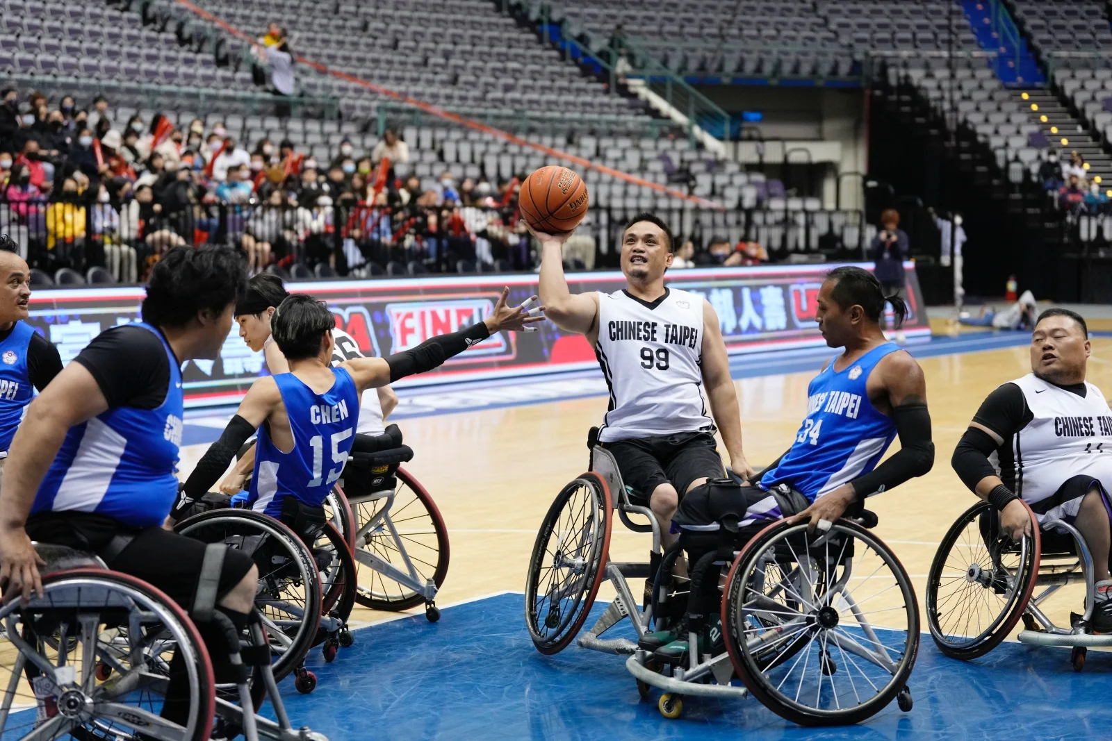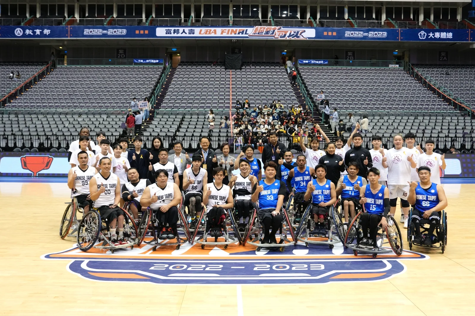 富邦人壽UBA大專籃球聯賽持續突破,111學年度決賽不僅首度帶各層級一同「攻蛋」,更讓輪椅籃球也登上臺北小巨蛋的舞台,今天(26日)公開一級季軍賽前邀請中華輪椅籃球代表隊進行公益賽,除了為即將在泰國舉行的亞帕運資格賽熱身,也希望能藉此機會讓外界更加認識輪椅籃球,從UBA推動運動平權。