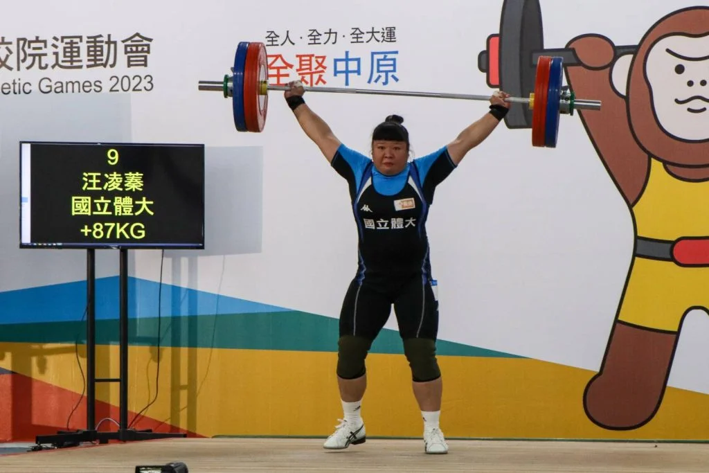 從一年前開始,國立體大汪凌蓁就以87公斤以上級抓舉全國紀錄111公斤為目標,經歷三次失敗,終於在本屆全大運以112公斤將全國紀錄改成自己的名字,挺舉項目也以135公斤刷新青女組的紀錄,總和247公斤平全國,拿下自己全大運的首面金牌。
