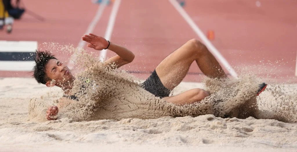 最後一跳、逆風而行,林昱堂在日本大阪木南道孝記念田徑賽、男子跳遠決賽,以個人最佳8公尺12破大會摘金。