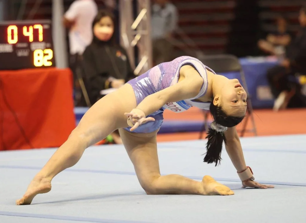 112年全大運競技體操最後一天賽程結束,輔仁大學丁華恬包辦公開女子組個人全能、高低槓、平衡木與地板四面金牌,為本屆競技體操金牌數最多的選手,比賽中她也表現得十分自信,展現奪金氣勢。