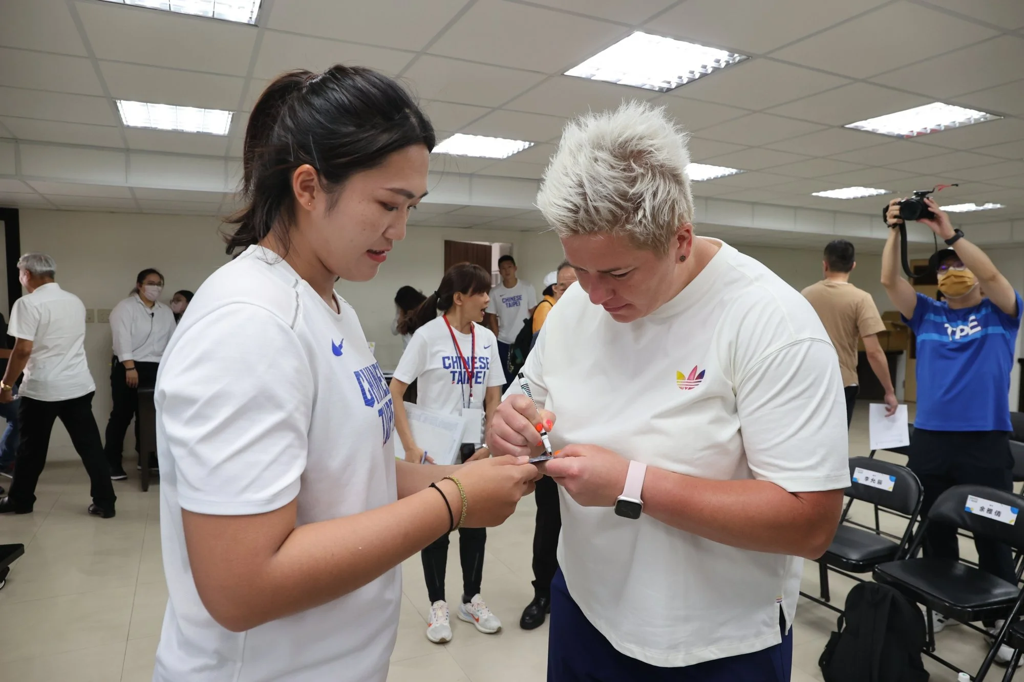 睽違四年,2023臺灣國際田徑公開賽本週末5月27、28日(六、日)將在新北市板橋第一運動場再次點燃戰火,這是臺灣田徑圈最盛大且眾所矚目的賽會,本屆共計有13國900位田徑菁英參賽,記者會上特別邀請到波蘭鏈球女王沃達奇克(ANITA WŁODARCZYK)和臺灣女子鏈球紀錄保持人余雅倩同台展現女力,沃達奇克生涯最佳82公尺98是世界紀錄保持人,余雅倩正朝超越70公尺的目標前進,面對這樣強大的對手她坦言,「完全是來向偶像學習的,會試著從比賽中觀察她的準備動作和技巧,更重要的是那個精神和氣場,希望未來能夠向她看齊!」