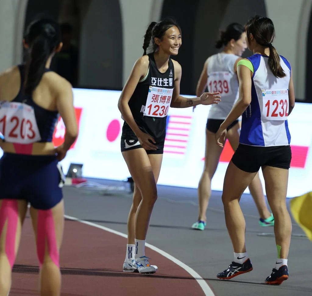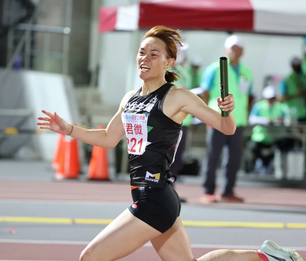 亞仕生醫女子4X100公尺接力最後一棒胡君微,衝過終點,大表參考成績顯示著「44秒59」,可惜最後修正完,正式成績是44秒60,僅打破台灣國際田徑公開賽大會紀錄44秒74,距離高懸29年的全國紀錄只差0.02秒。