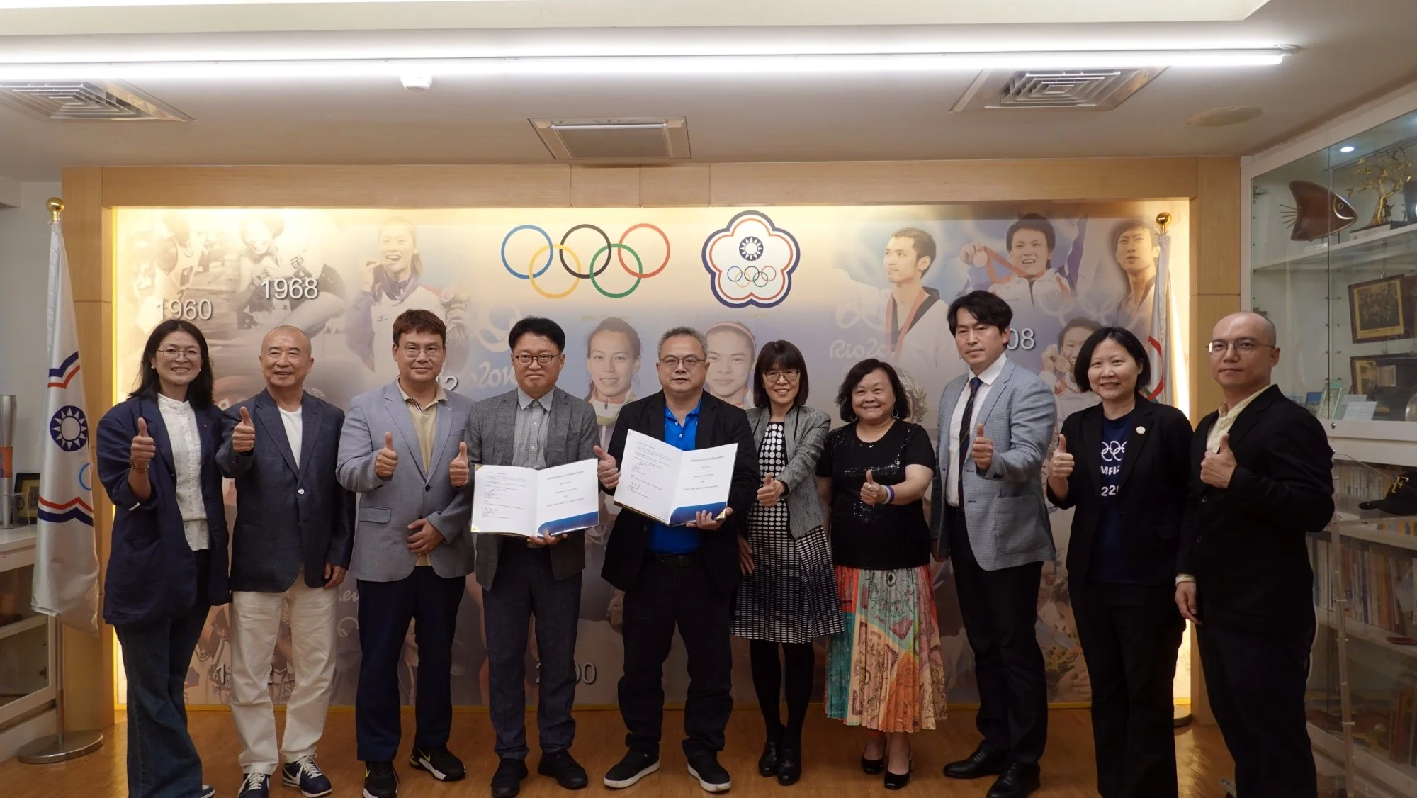 台韓體記協會合作備忘錄,今日由我國體記協會理事長黃顯祐與韓國體記理事長楊忠武簽署。教育部體育署國際及兩岸運動組組長許秀玲、中華奧會副主席暨媒體委員會主委廖裕輝,以及自韓國來訪的亞洲體記聯盟AIPS ASIA主席鄭熙暾、韓國體記秘書長池在錫、我國體記協會榮譽理事長簡明珠等都在場見證。