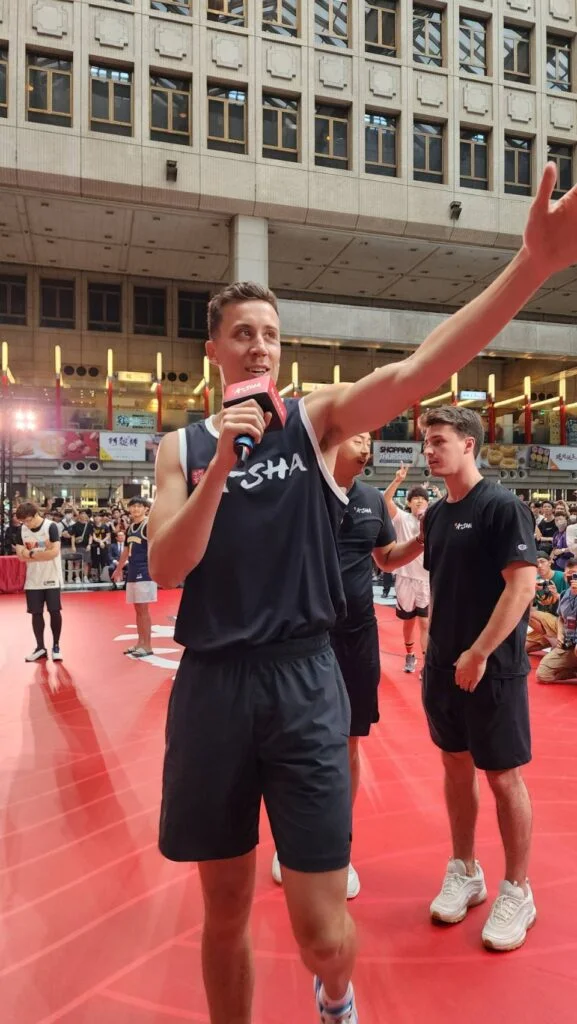 「他的投籃節奏感真的很棒,完全就是NBA等級,那些投籃細節、手腕運用跟身體律動感,這些都值得學習。」簡廷兆表示把握近距離觀察機會,很榮幸可以一塊交流三分球對抗,儘管最終五個定點、每個定點3球,45秒內投完,他和高國豪都只投進8顆,輸給阿舍哥10個,但過程受益良多。他也覺得在台北車站投籃是非常奇特的體驗,空間感完全不一樣,弧頂正對籃筐出手時,還會看到車站大時鐘與店家廣告。
