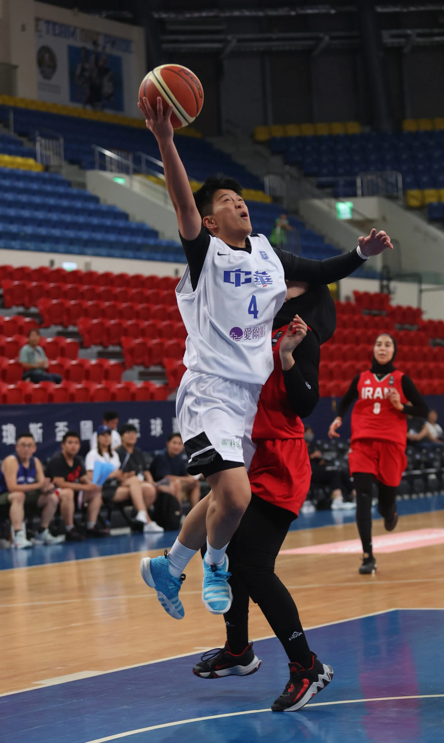 中華藍迎戰伊朗,首節黃鈴娟獨攬9分,團隊單節26:14先小幅拉開差距後,接下來12人輪番上陣,與對方打得你來我往。伊朗一度靠著連續三分逼近,但中華藍有黃鈴娟、陳晏宇等人適時止血,仍把握領先優勢,最終也以77:58打下勝利,戰績兩勝一敗,與韓國並列第二。