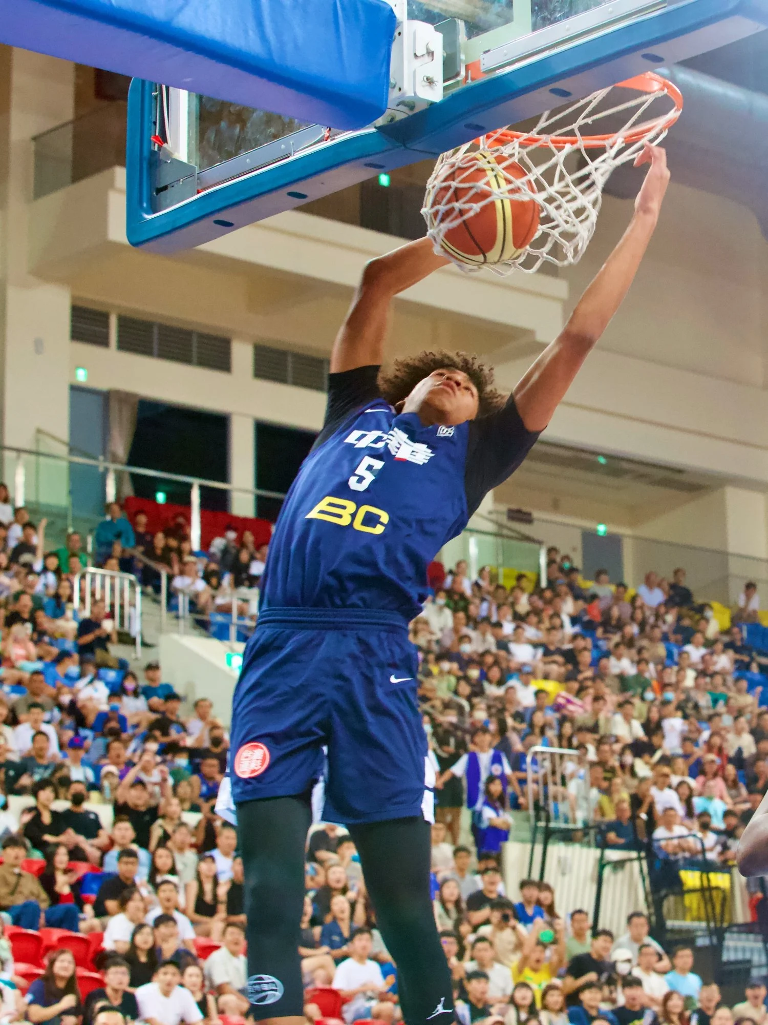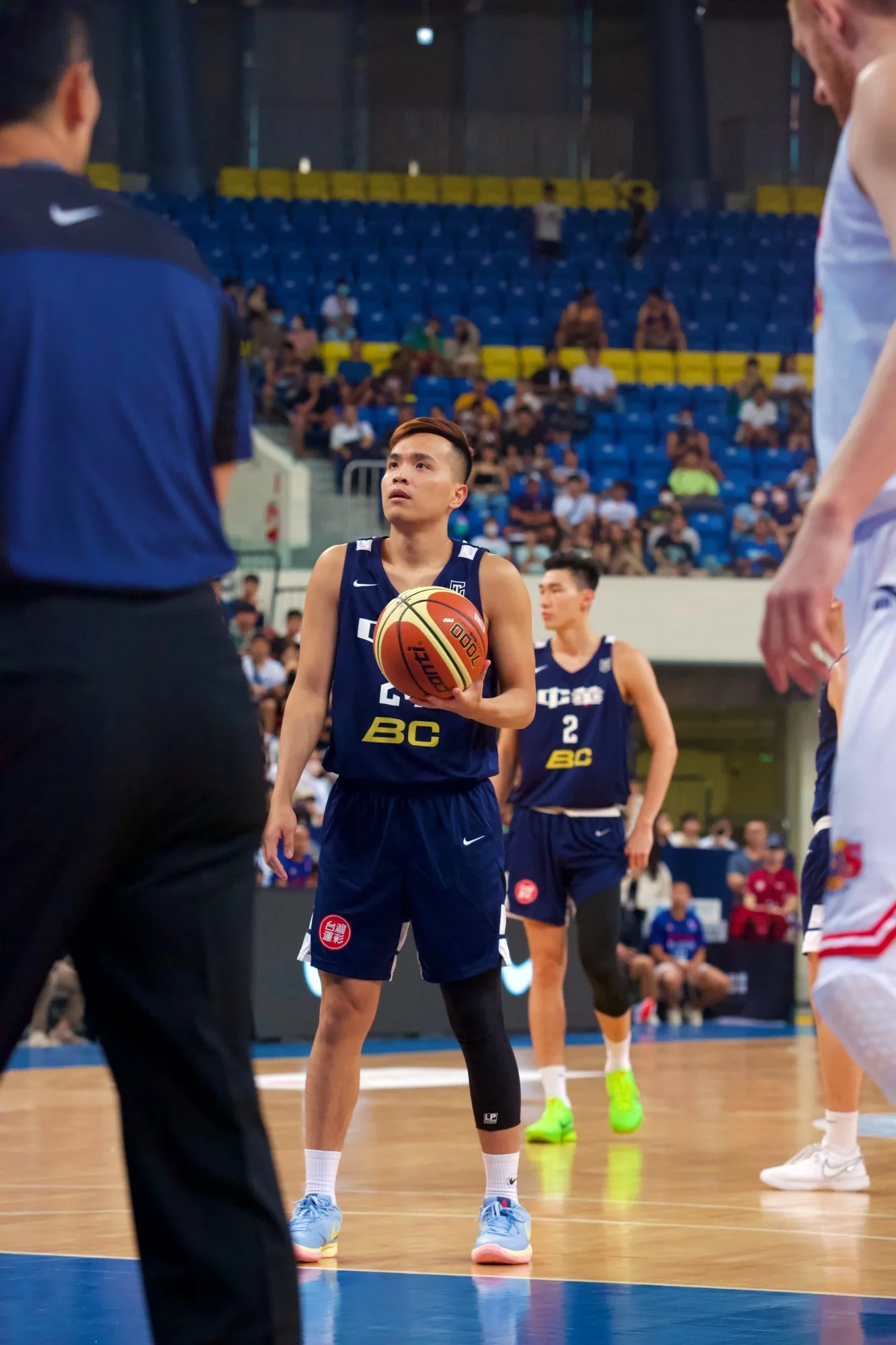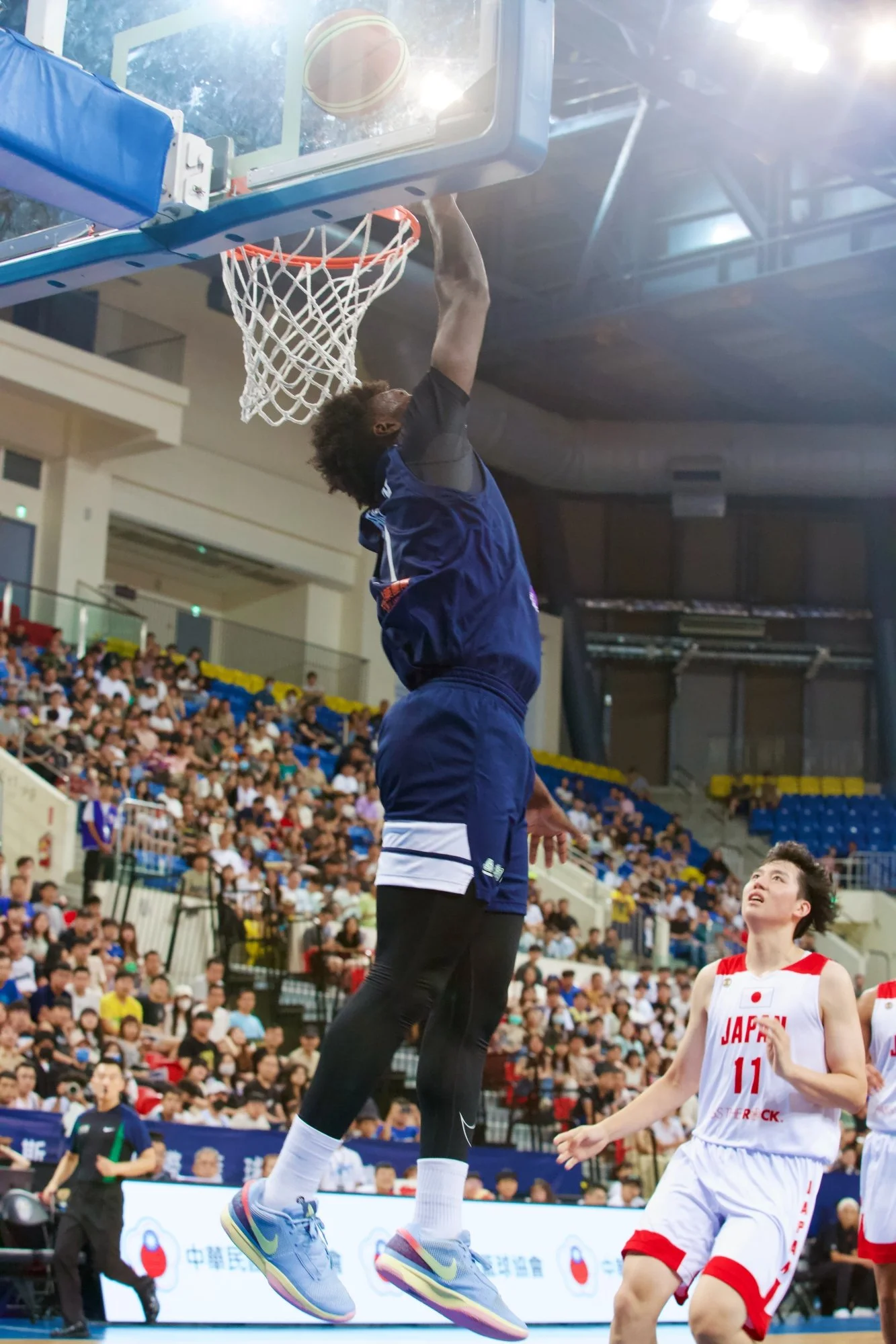 中華藍迎戰由日本大學代表隊組成日本隊,開局一路領先,最多拉開至22分差距,上半場讀秒階段,劉錚先長傳給前場阿巴西,阿巴西再橫傳給跟進的曾祥鈞完成空中接力灌籃,嗨翻和平籃球館全場粉絲。
