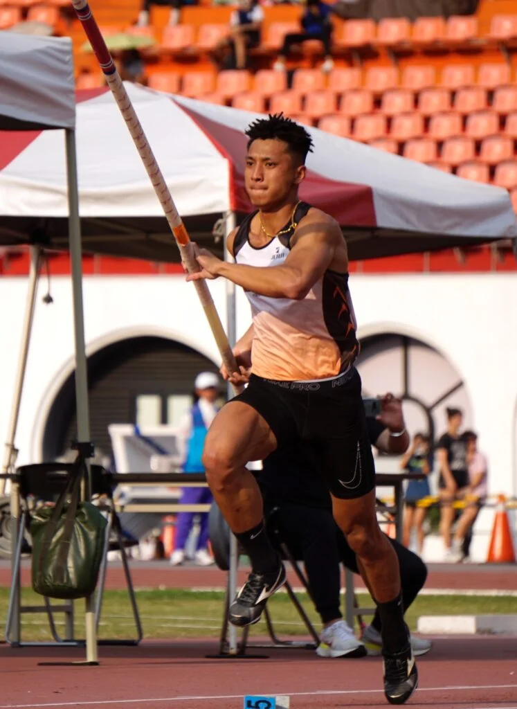 22歲林志成從十項全能轉練撐竿跳專項來到第四年,轉項第二年贏得全大運金牌,去年新北市城市盃以5公尺38破全國紀錄,再來又收下台南全運會金牌,競技成績順遂。特別是這一年多來著重基本功,他上半身練得更精實,體重76公斤、體脂來到8%,撐竿跳竿子磅數不斷增加,肌力變強才得以駕馭。