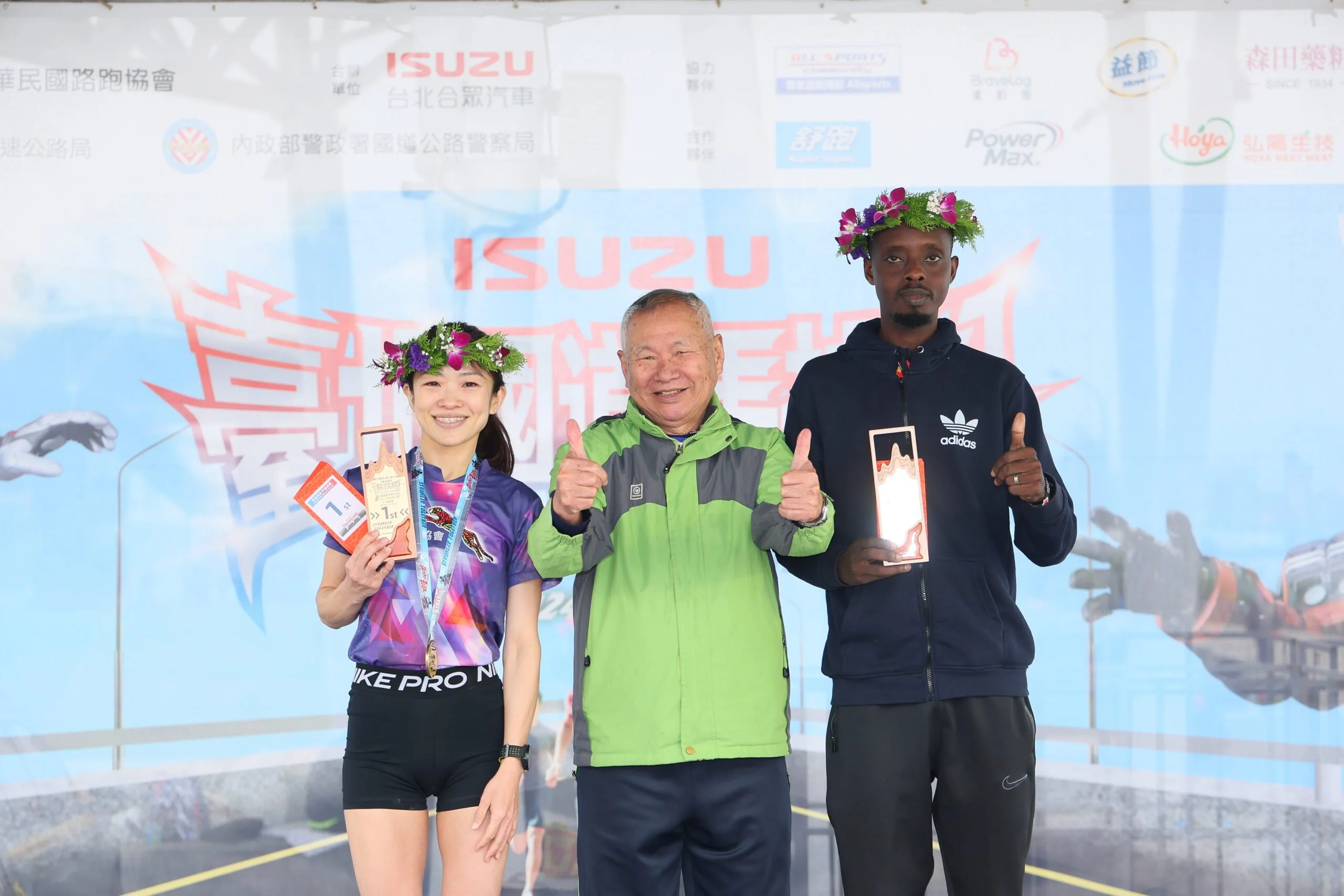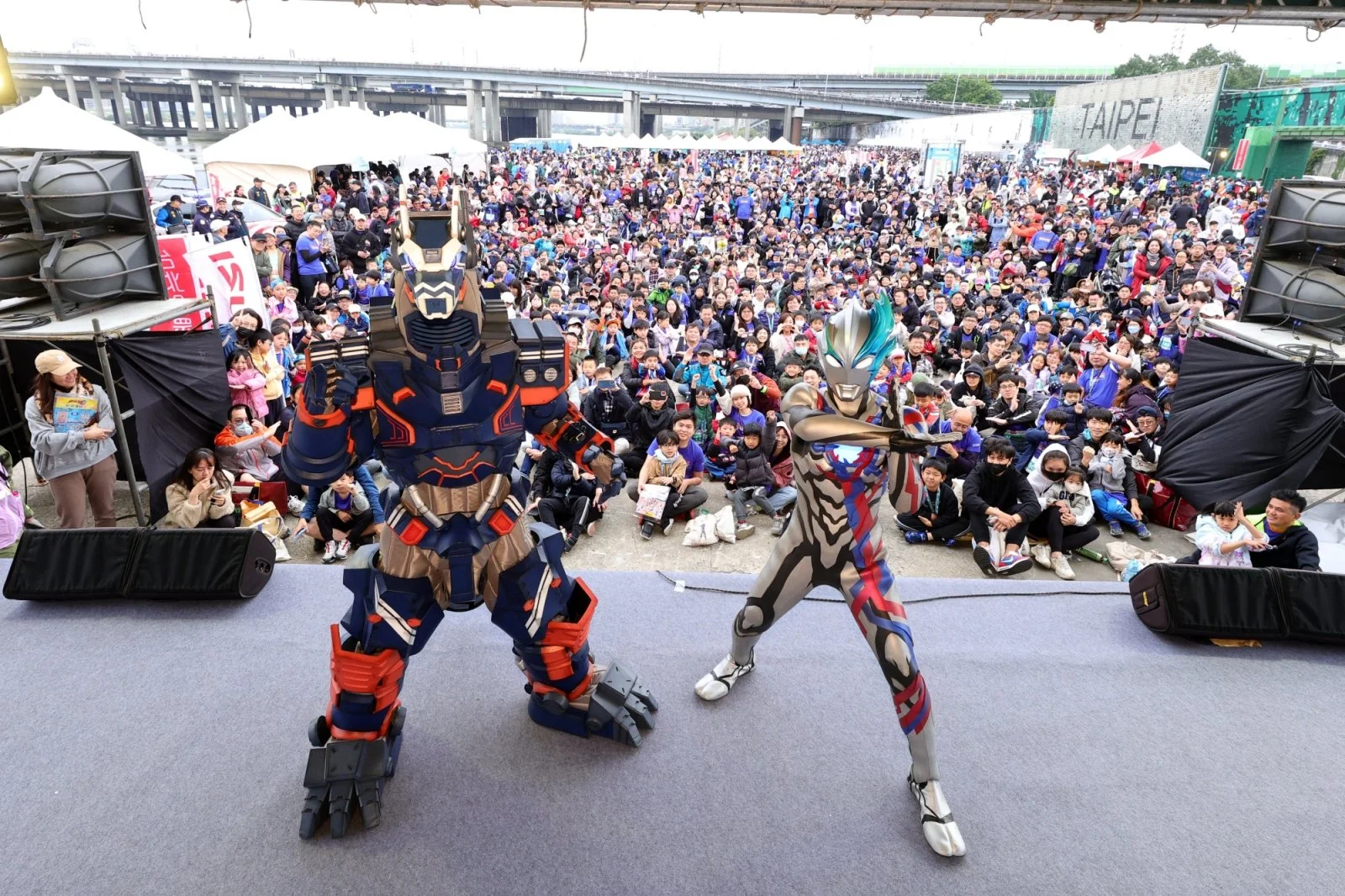 2024 ISUZU臺北國道馬拉松今日上午盛大開跑,一萬二千名跑者頂著寒風卻不減熱情,齊聚在高架道路一睹超人力霸王布雷薩的風采,臺北市政府體育局蔡培林副局長、中華民國路跑協會郭國雄理事長、交通部高速公路局彭煥儒副局長、內政部警政署國道公路警察局駱立凡副局長、ISUZU台北合眾汽車黃脩程總經理到場鳴槍,為跑者加油!賽前預告登場的神秘嘉賓-23式特殊戰術機甲獸「阿斯加隆」也在活動會場和大小粉絲互動。