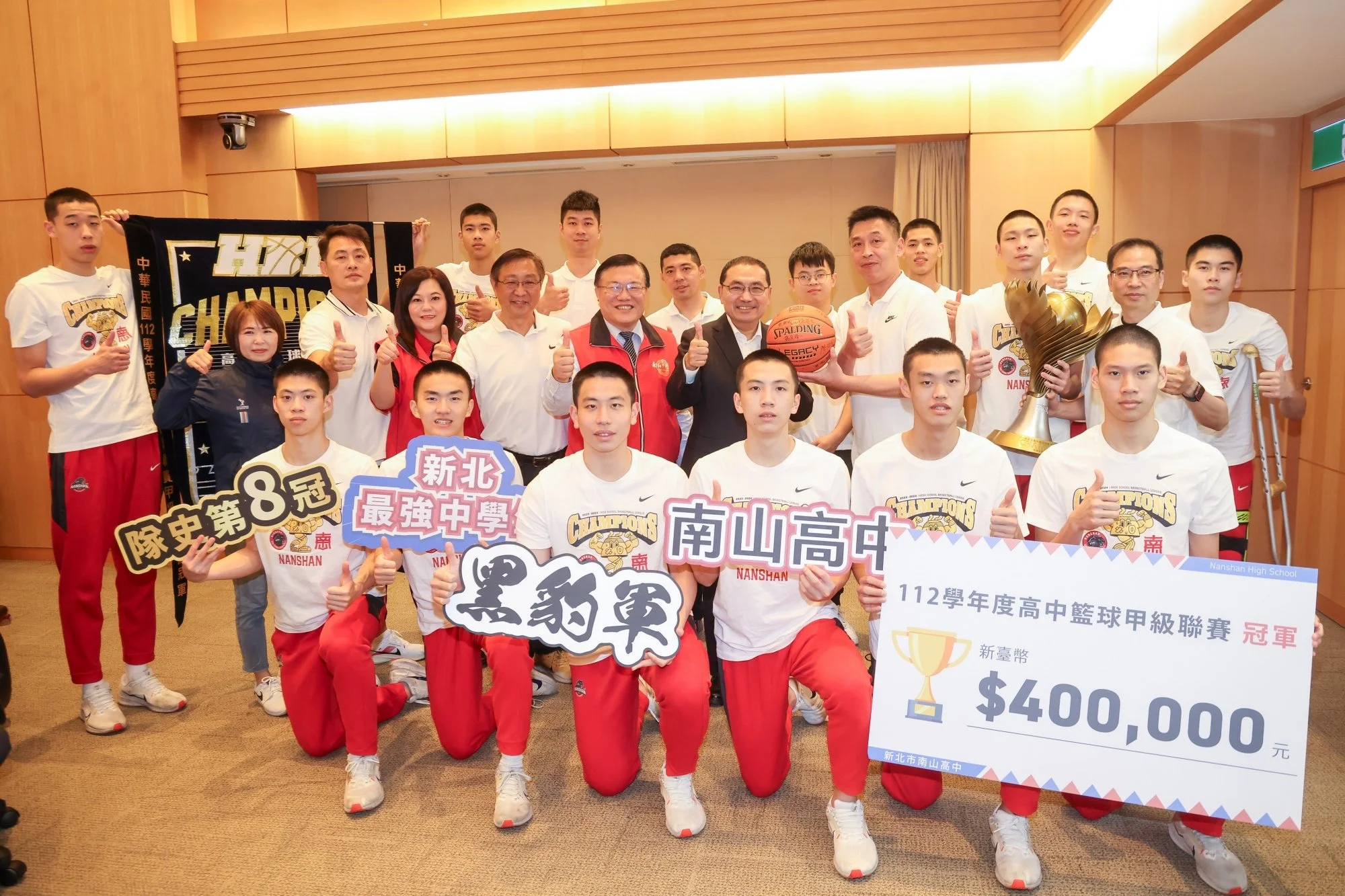 新北市長侯友宜表示,上週日HBL男子組冠軍戰開賽前,到臺北小巨蛋為即將上場的南山高中籃球隊加油提振士氣,開賽前向球員喊話,告訴他們:「要相信自己一定做得到!」,並約定今年捧回屬於南山高中的冠軍獎盃,開賽後兩隊比分一路拉鋸,直到最後30秒南山領先2分,不負眾望奪下冠軍,恭喜南山高中。